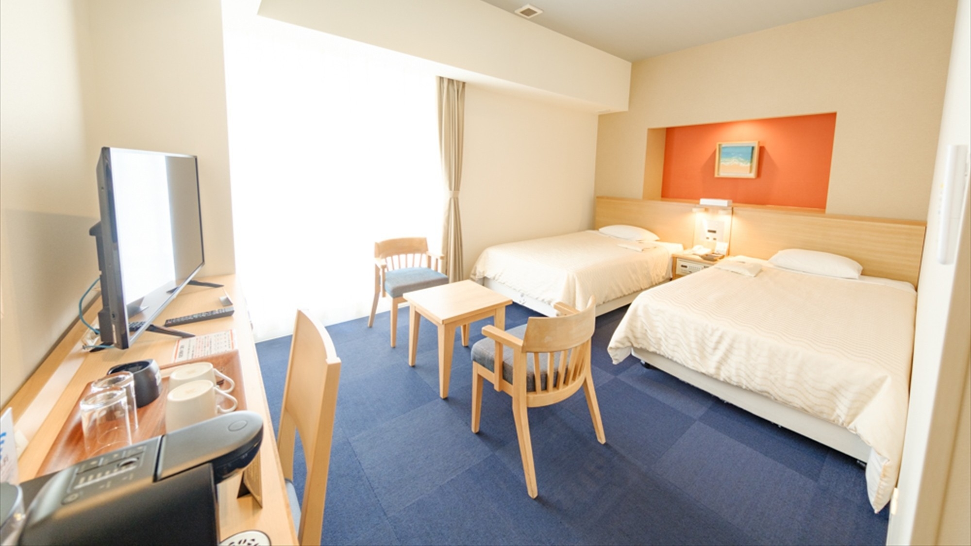 機能性の高いセミダブルベッド×2台利用のツインルームです。お二人の快適な時間をお過ごしください。