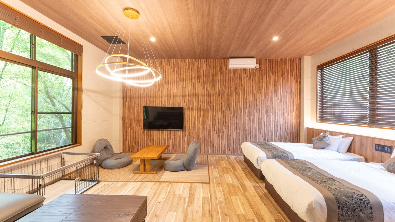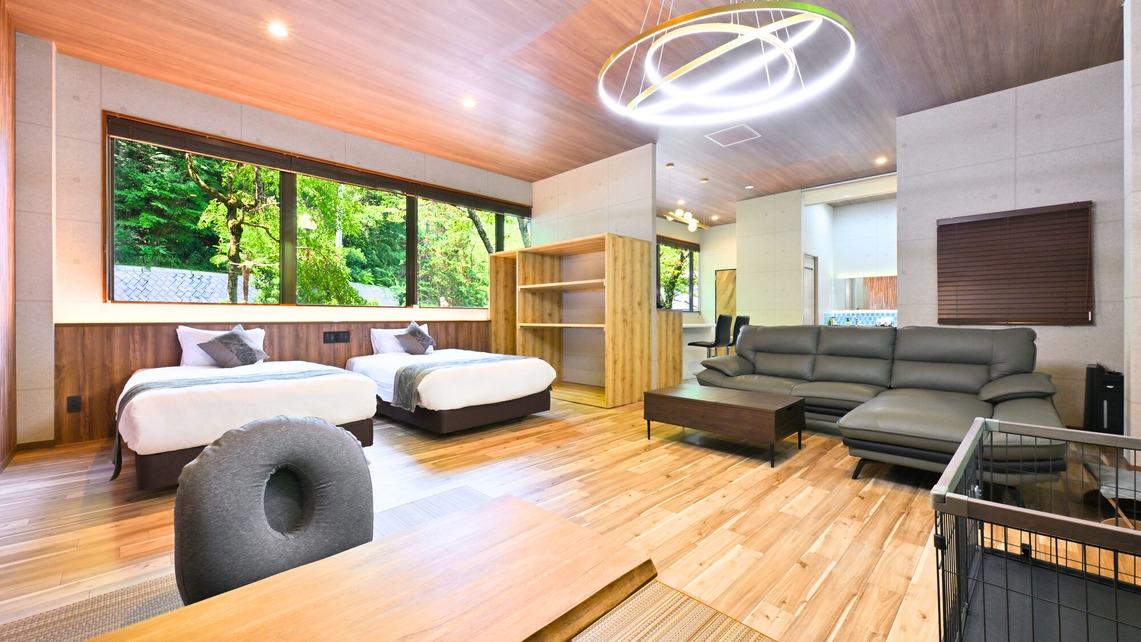 【定員】 1〜5名 ※4〜5名様目につきましては、既存のベッドをご利用いただく添い寝でのご宿泊になります。・大型犬までご宿泊いただけ、2頭までとなります。