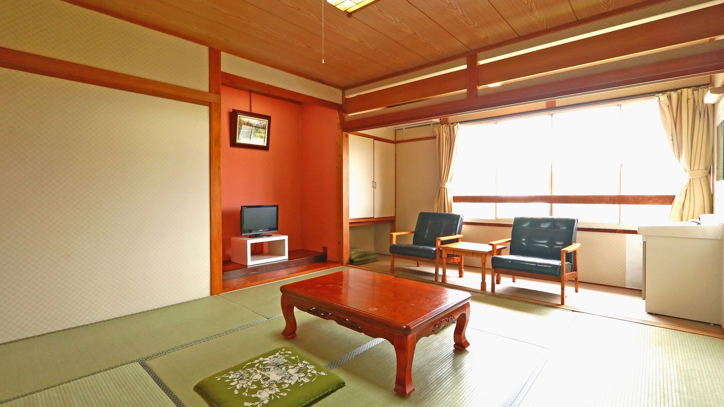 ◆富士山一望できるゆったり和室◆洗面台、広縁(インナーバルコニー)には3点応接セット◆床の間が付いた8畳のお部屋です。