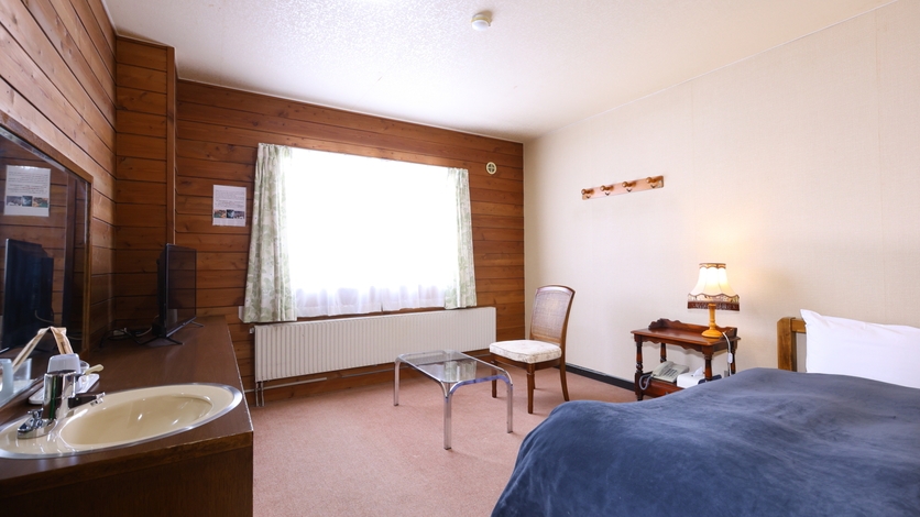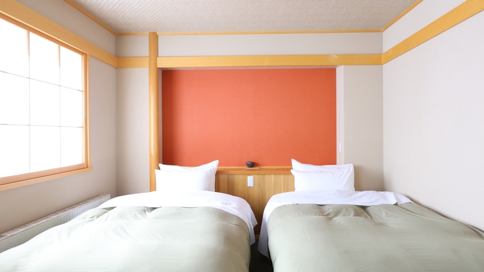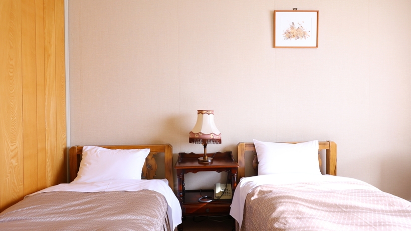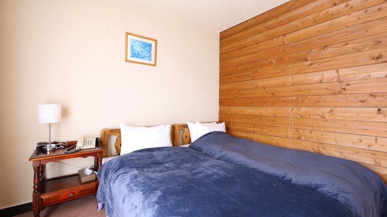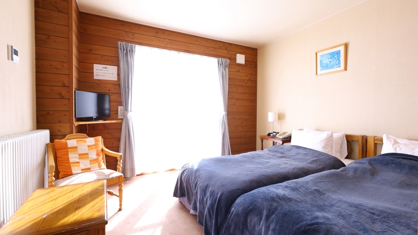 【志賀高原の景色を一望】ベッドが2台ある洋室ツイン※3名時1台はエキストラベッド■バストイレ付/空の冷蔵庫/禁煙/Wi-Fi完備