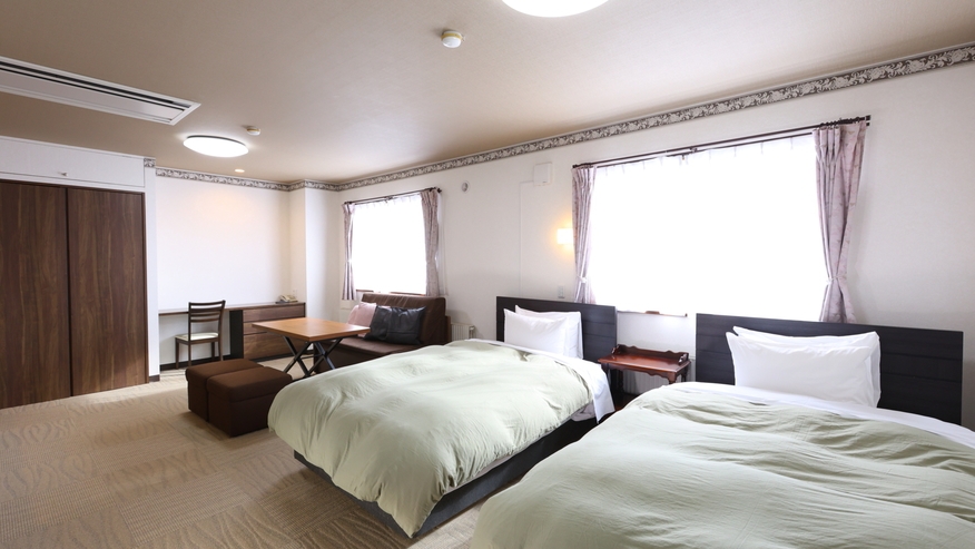 【志賀高原の景色を一望】キッチン付きで長期滞在にも最適なツインルーム■電子レンジ/空の冷蔵庫/バストイレ付/ソファーベッド完備/禁煙/Wi-Fi完備