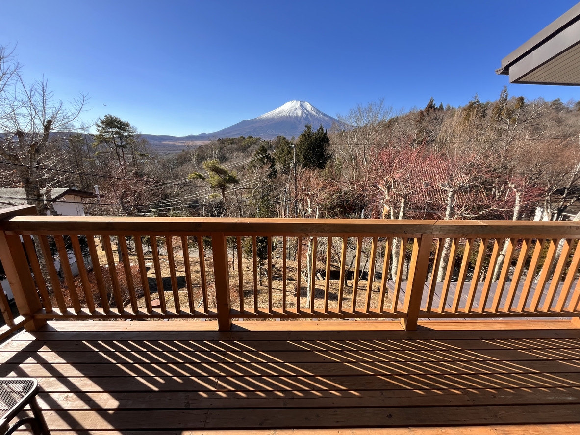 ■富士山を望める広いテラス、屋根のある広いウッドデッキ、富士山溶岩プレートのBBQコンロ、自然の音色をBGMに高原リゾートを満喫してください。