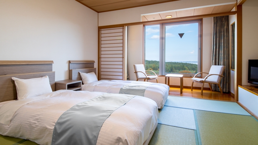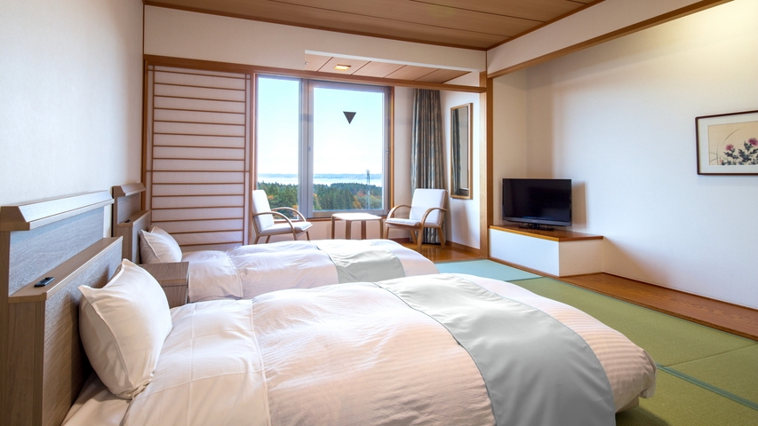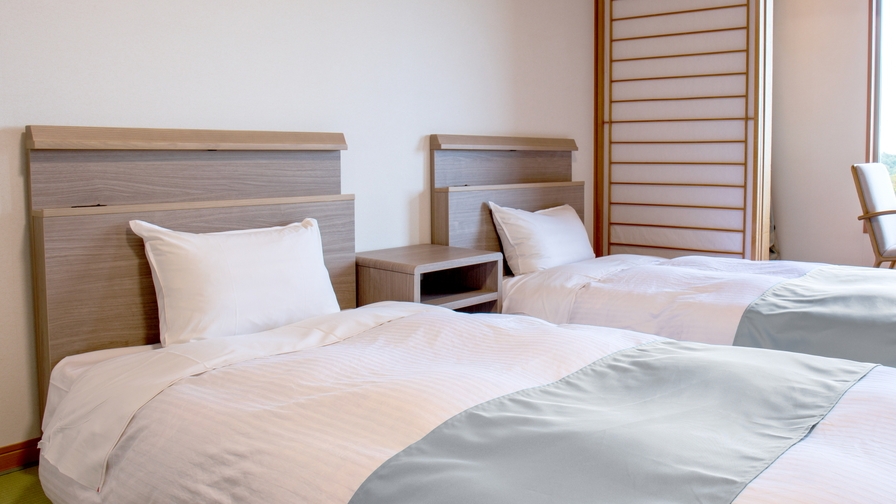 広さ:40.5平米/和室のなかにベッド幅:96cm×2台をご用意、3名様目は布団1組ご用意のお部屋です。