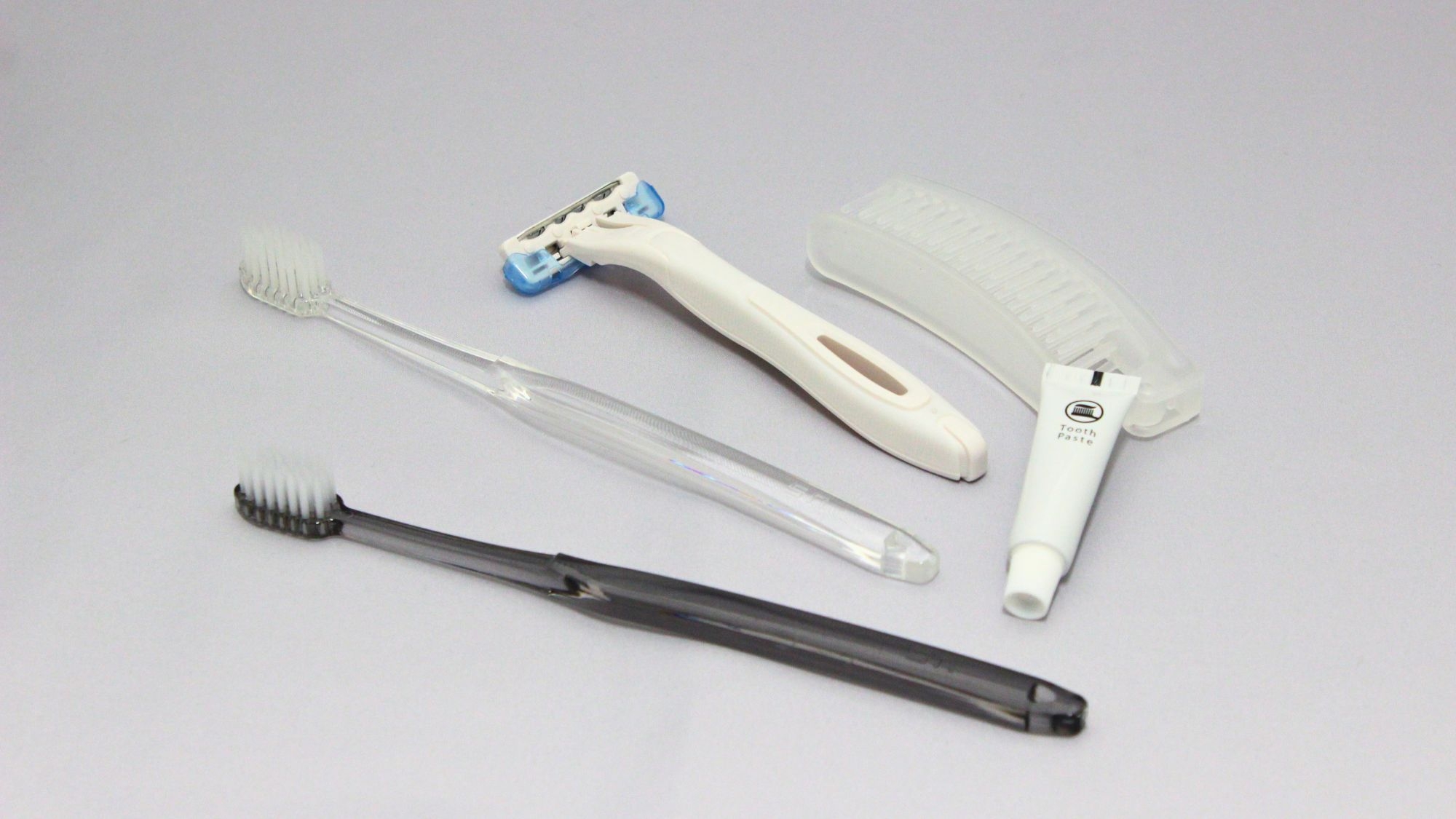 (タオル一式、歯ブラシ、剃刀、綿棒、珈琲、煎茶)
