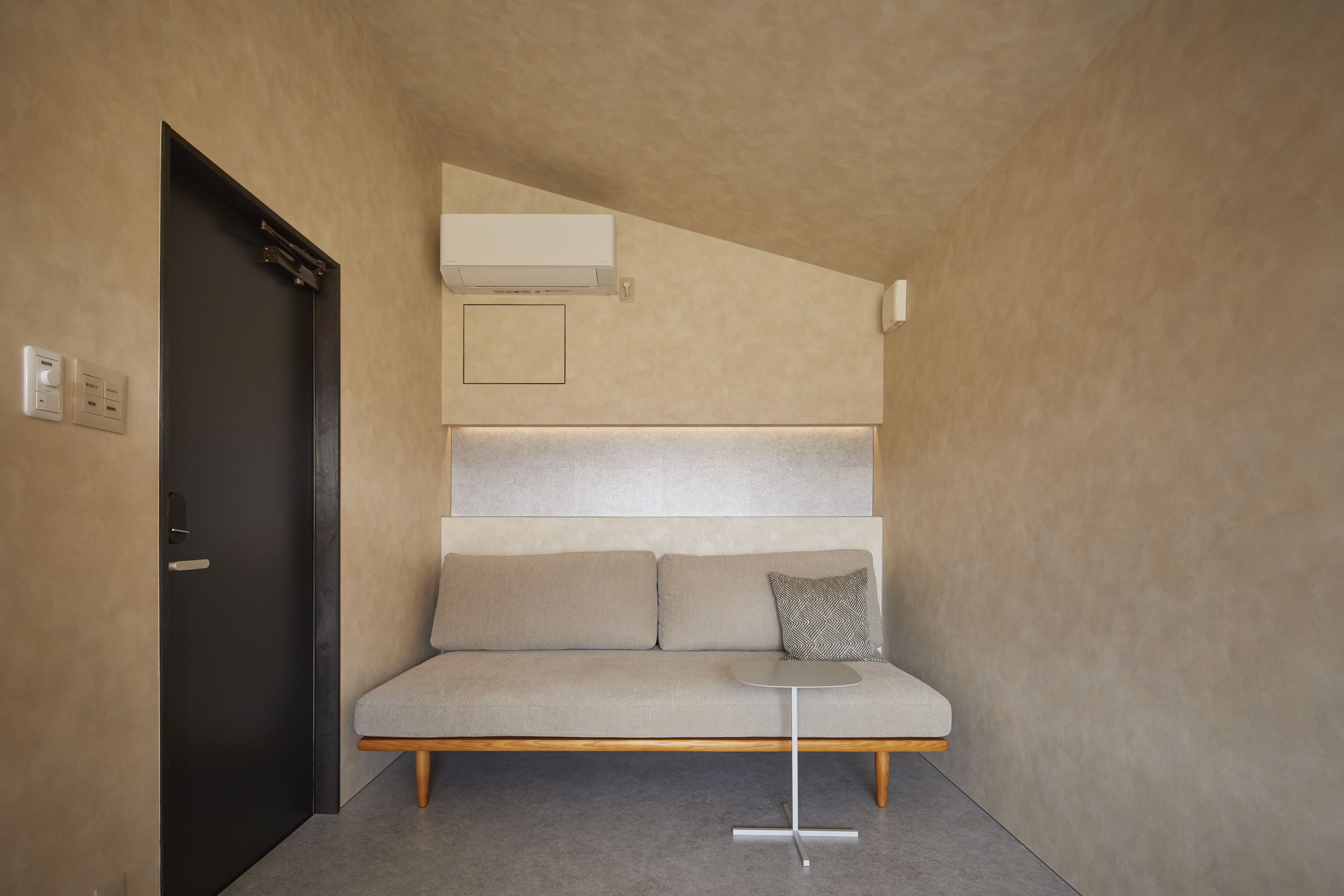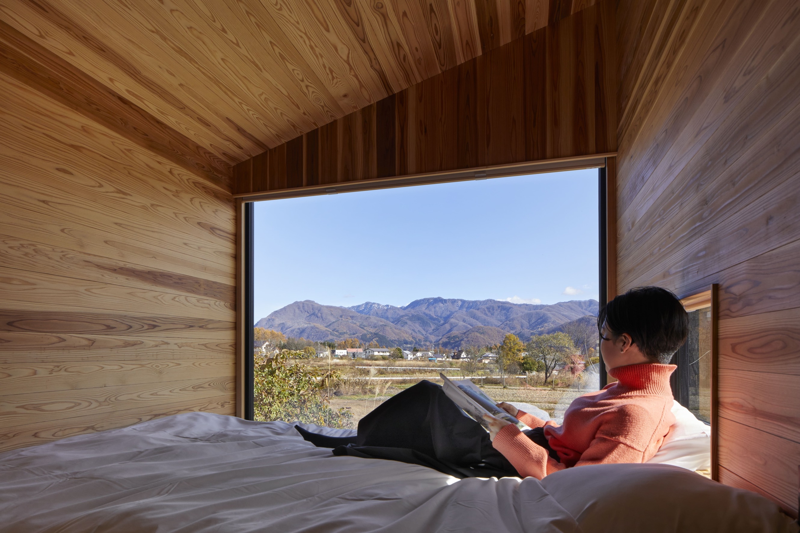 コンパクトな部屋ながら、大きな窓とクイーンサイズのベットで自然の景色と一体になれるような解放感があります。