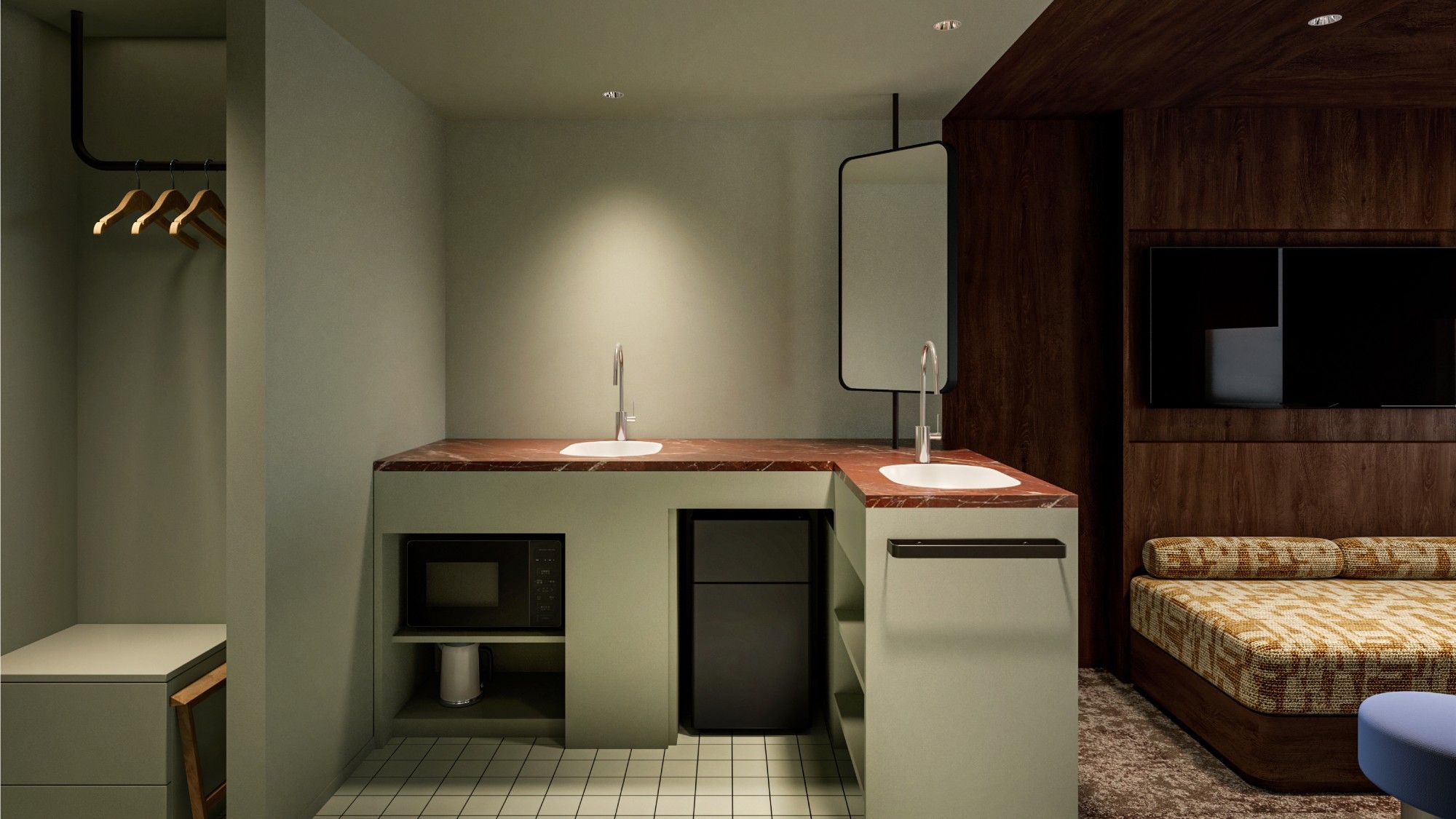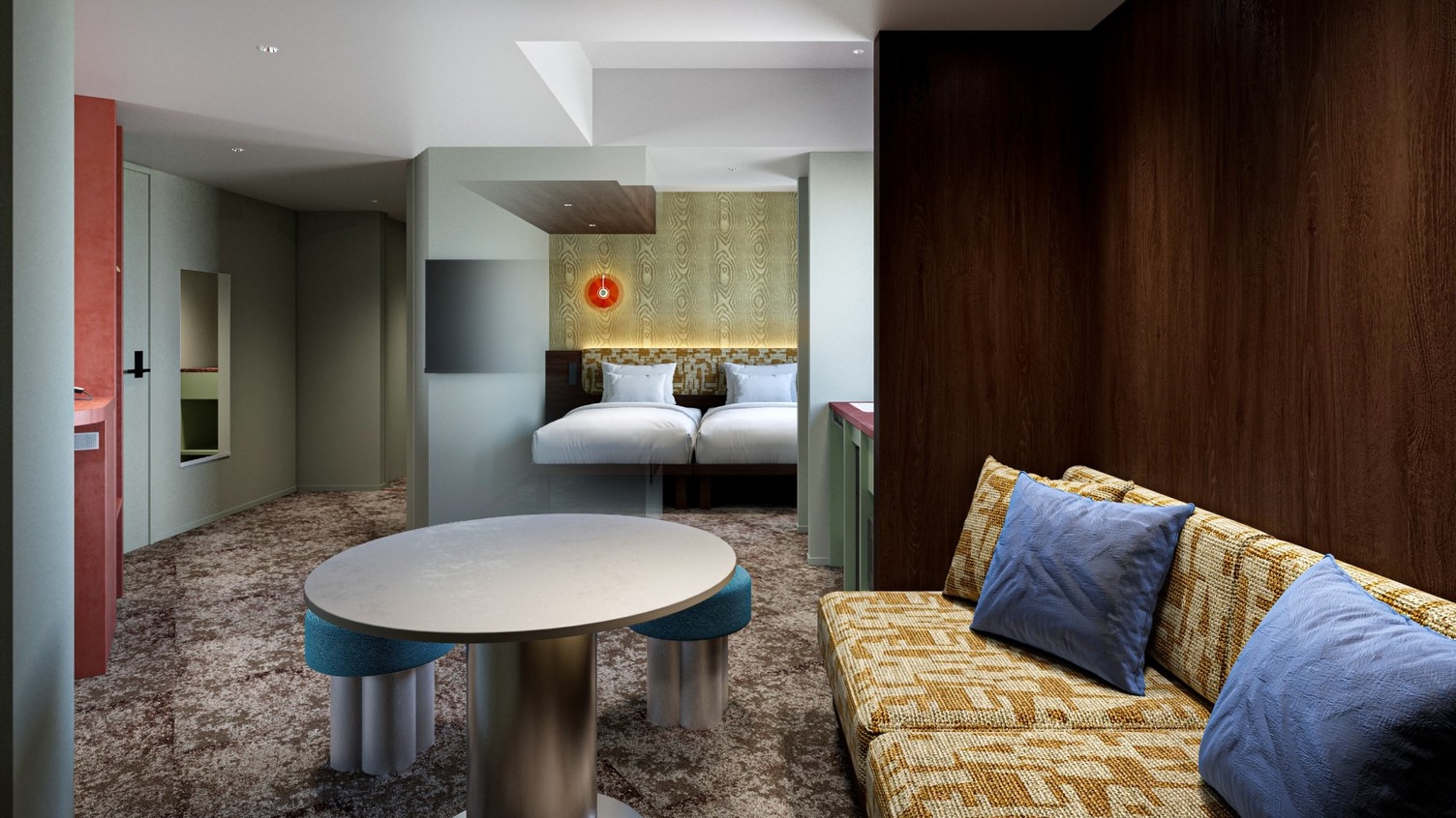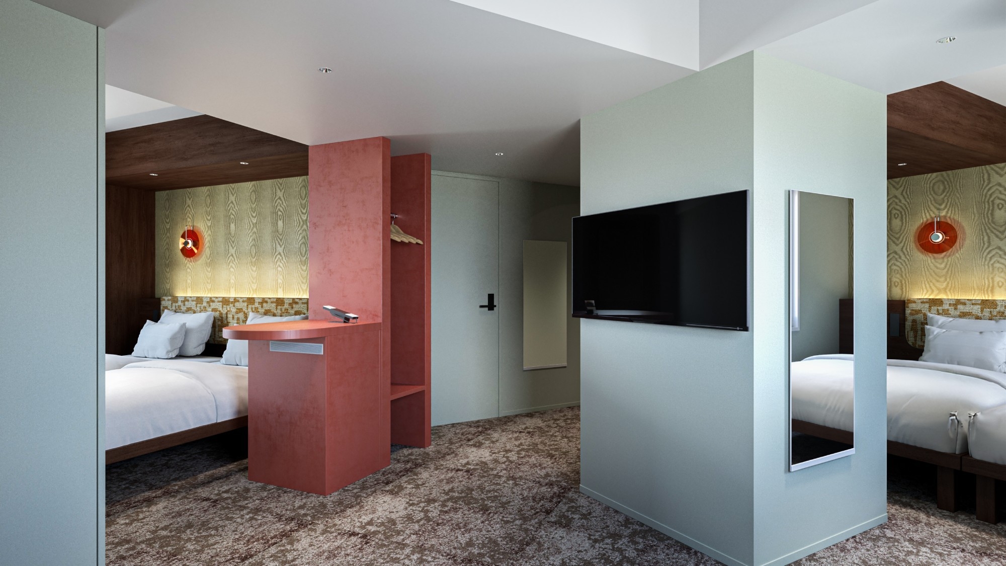 ツイン 30平米/ベッド幅110センチ/無料Wi-Fi/バス・洗面・トイレ別/洗濯乾燥機/キッチン/電子レンジ/冷蔵庫/電気ケトル/空気加湿清浄機