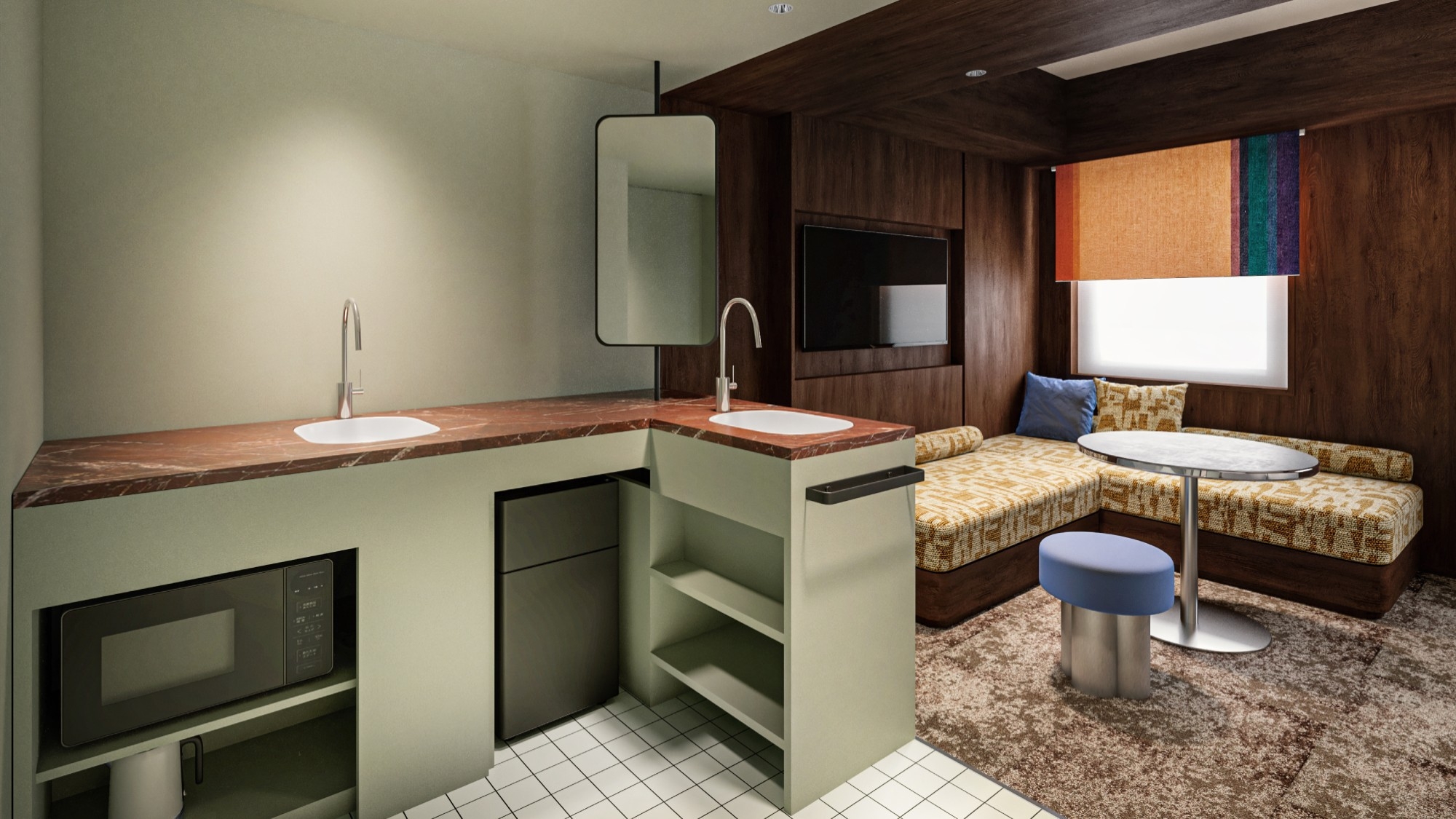 スーペリアクイーン 15平米/ベッド幅160センチ/無料Wi-Fi/バス・洗面・トイレ/洗濯乾燥機/空気加湿清浄機/冷蔵庫/電子レンジ/電気ケトル