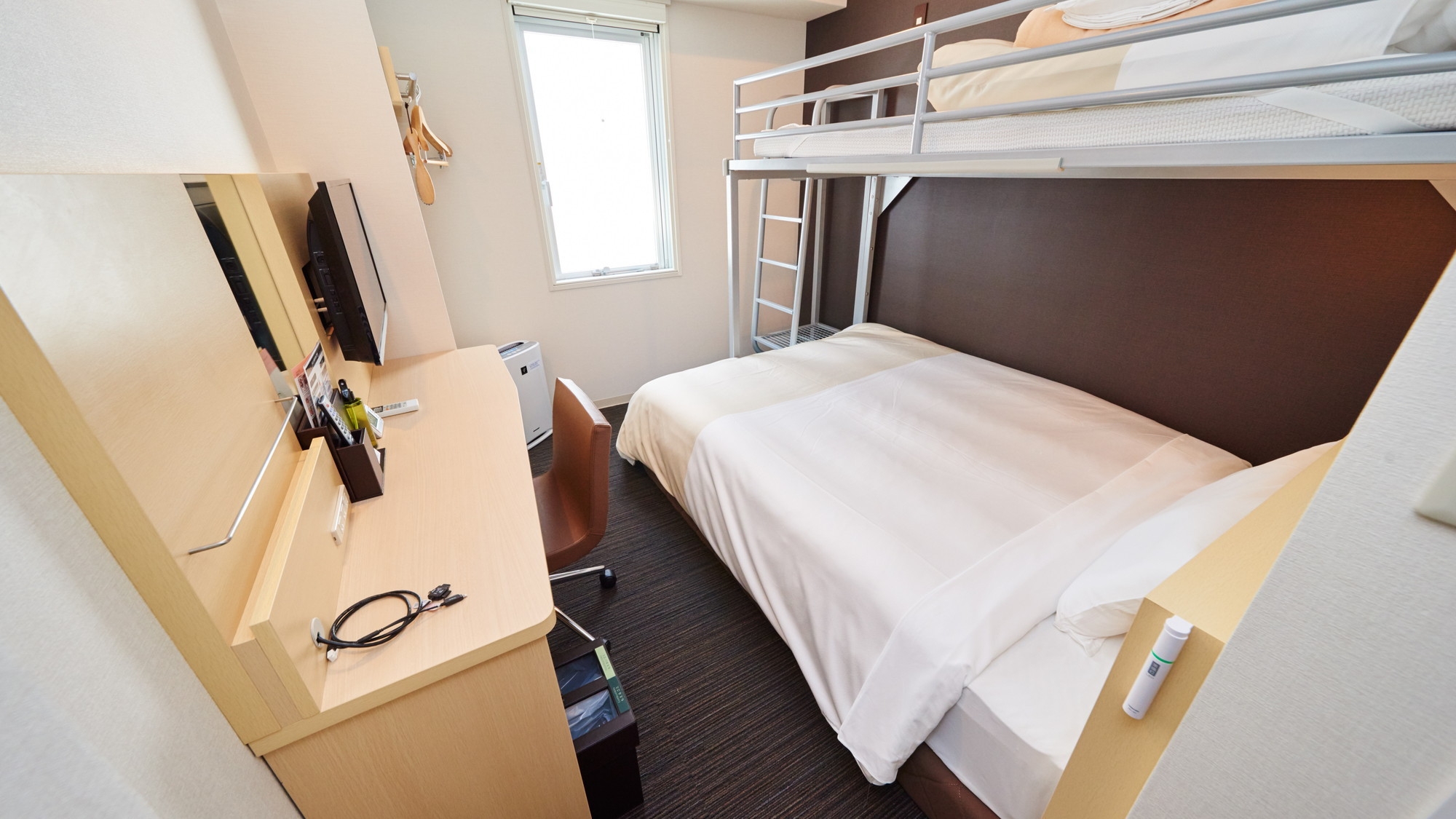 ダブルサイズのワイドベッドとお子様に人気のロフトベッド付の【スーパールーム】です。ご家族にお勧めです。