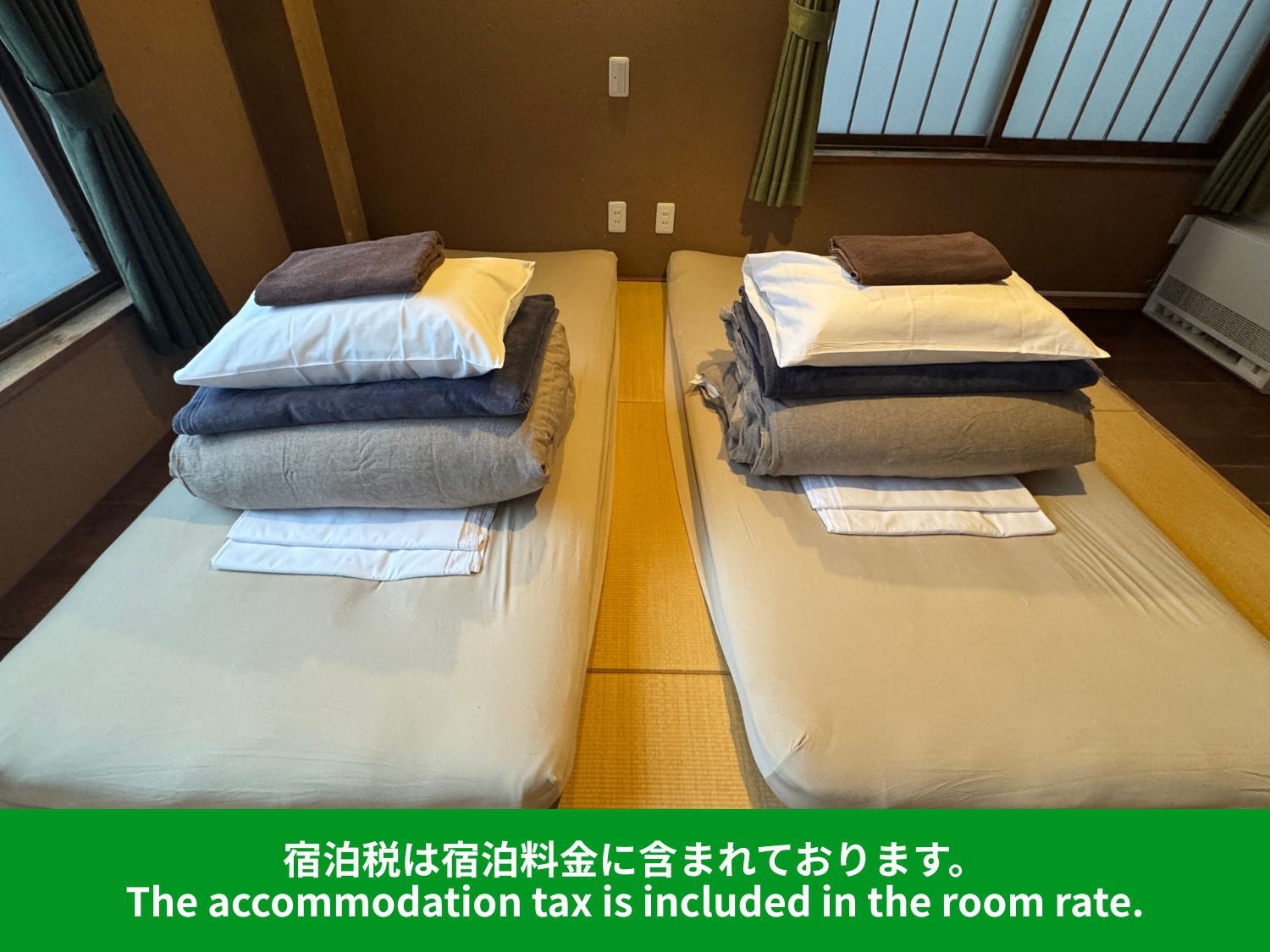 書店と併設した別館のツインルーム和室はお布団を備えた最大2名様でご利用頂ける個室です。当宿では別館に1部屋のみご用意しております。