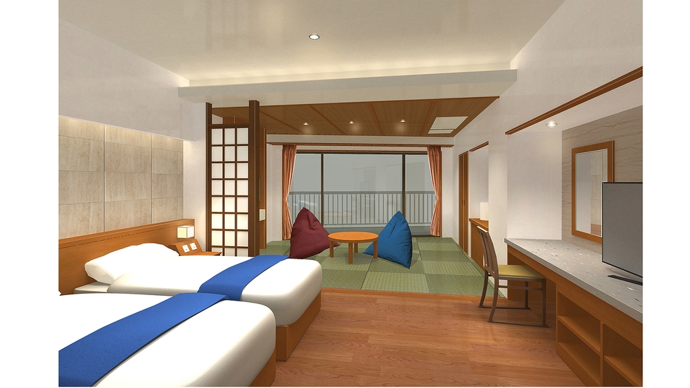 2025年12月リニューアル◆バリアフリー対応◆和洋室タイプ(海を望む客室) 2025年12月にリニューアルオープンした和洋室タイプ。 和のやすらぎと洋の快適さ