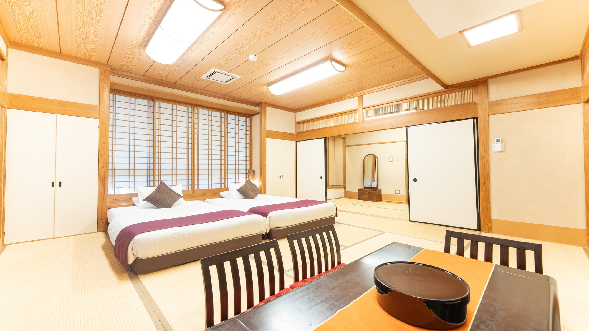 追加の寝具は布団2式のみとなり、5名様以上のご利用は添い寝となります。
