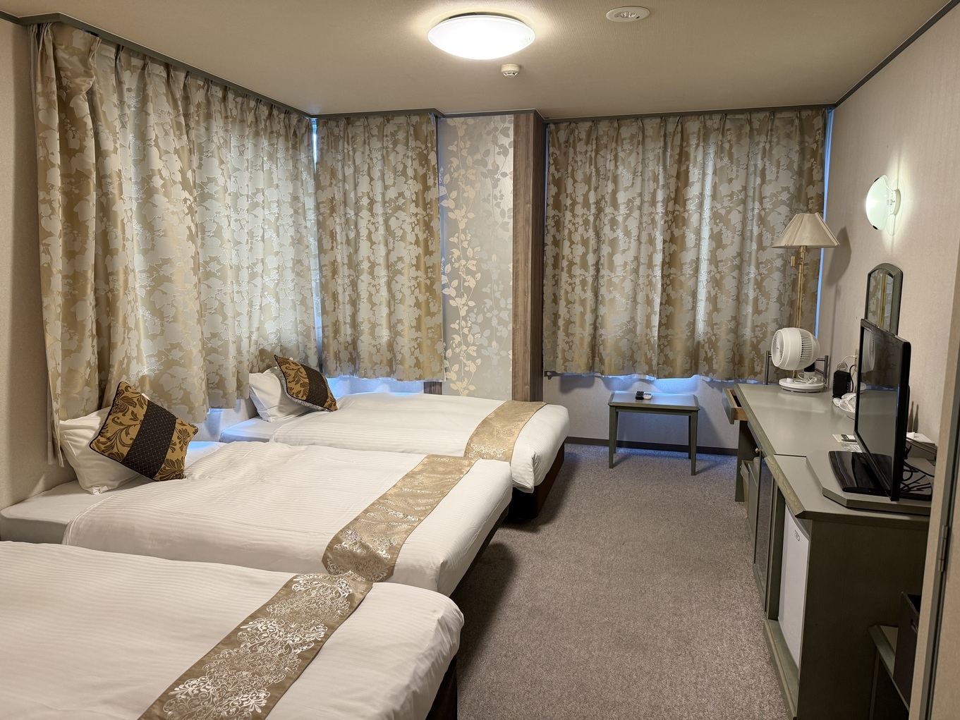 <禁煙>140cmベッド2台と120cmベッド1台、合計ベッド3台のお部屋。4名以上の場合1台のベッドを2名でご利用いただきます。(ベッド追加不可)