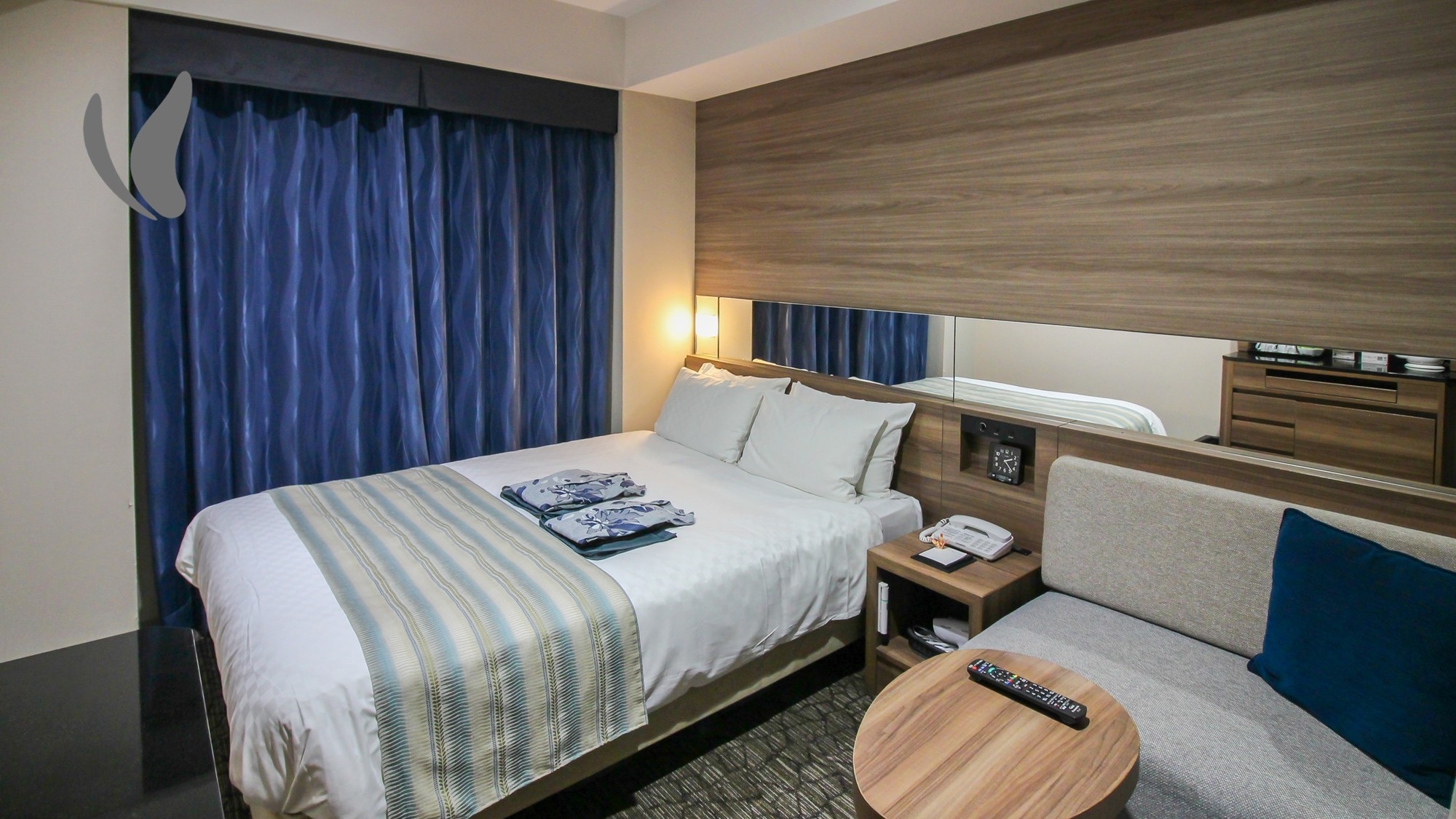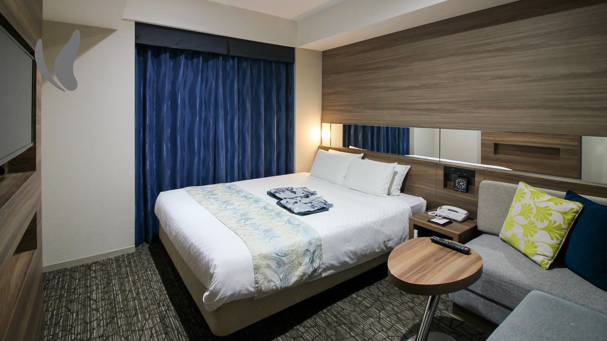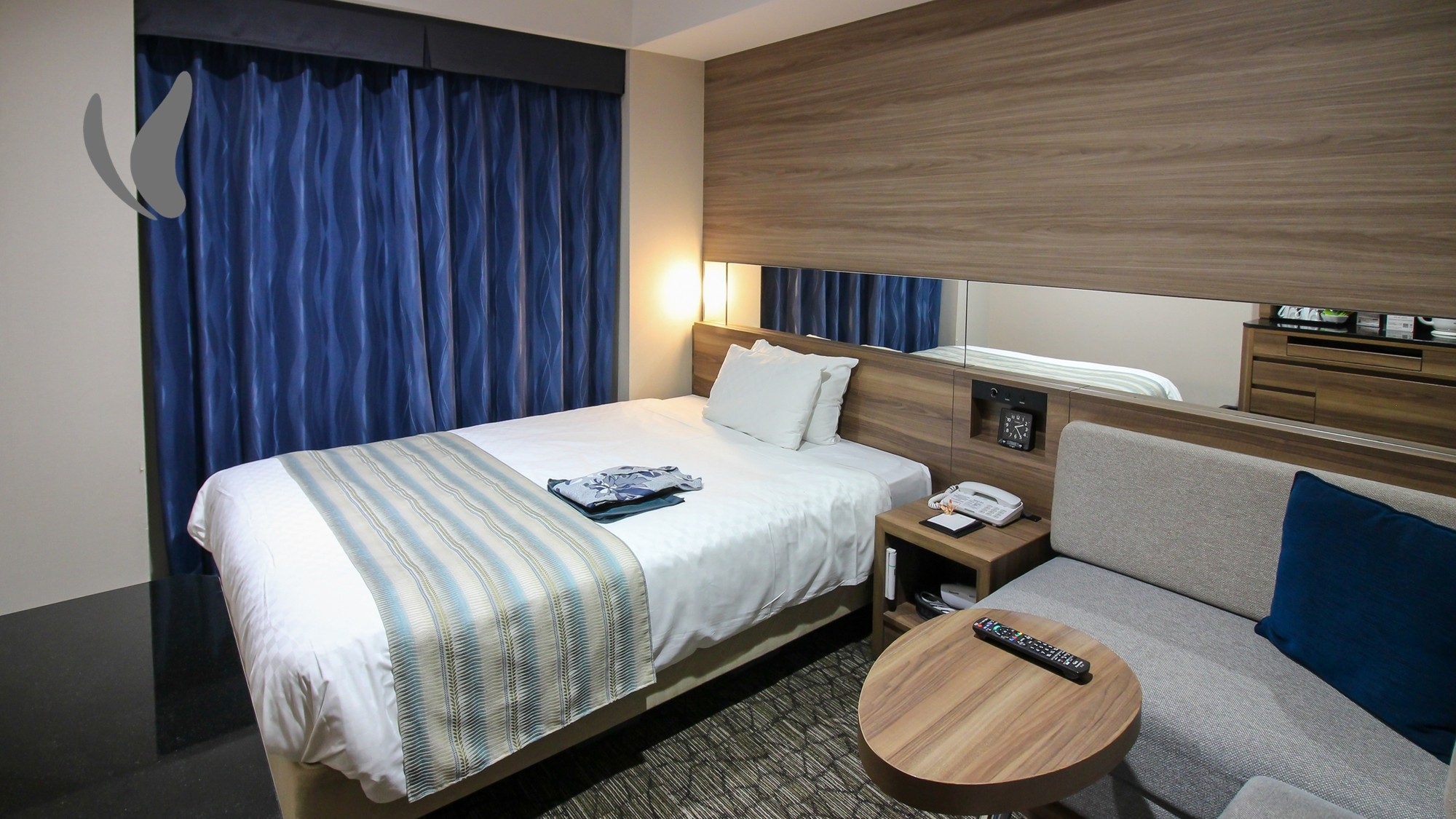 17平米 160cm幅のベッド1台のお部屋です。連泊時、お部屋の清掃が必要な場合は『清掃カード』をドアの外側にお貼りください。