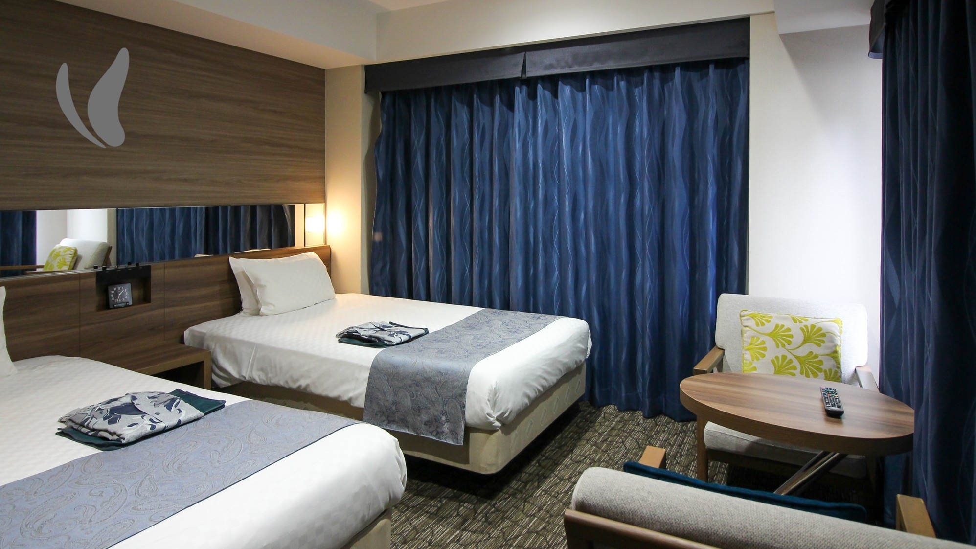 21平米 110cm幅サイズのベッドを2台ご用意したお部屋です。連泊時、お部屋の清掃が必要な場合は『清掃カード』をドアの外側にお貼りください。
