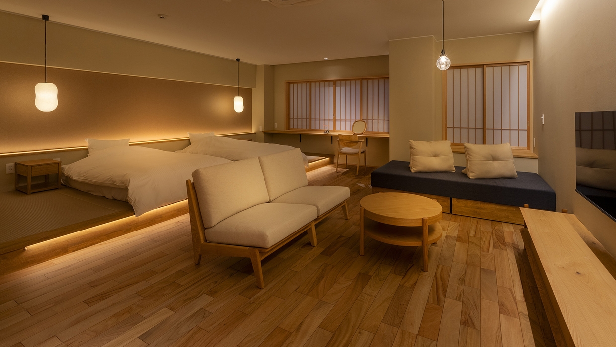 花尾館にある当館最上階で一番広いお部屋。 山林を眺めると野生の鹿を見ることも◎ インナーテラスからは自然の樹木を眺めながらくつろぎの時間を。