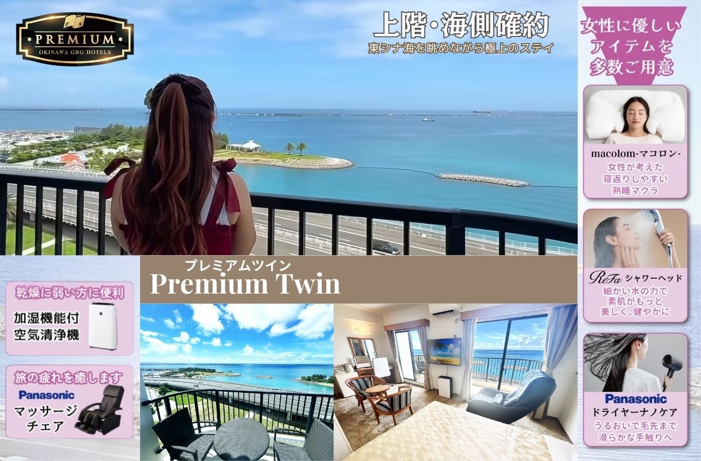 セミダブルベッド2台、禁煙、インターネット接続可、バルコニー付、海側、マッサージチェア、加湿空気清浄機