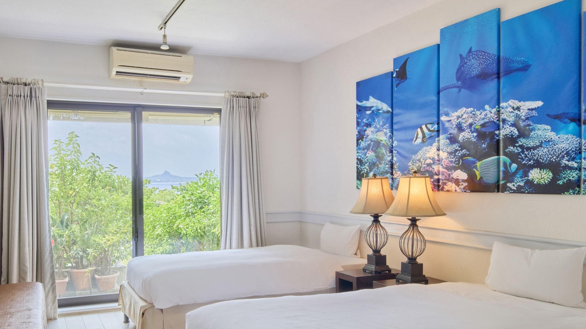 ■部屋内やテラスから一部、海が見えます。■階数指定は出来ません。■3・4名様でご利用の場合、エキストラベッド、ソファーベッドでのご用意となります。