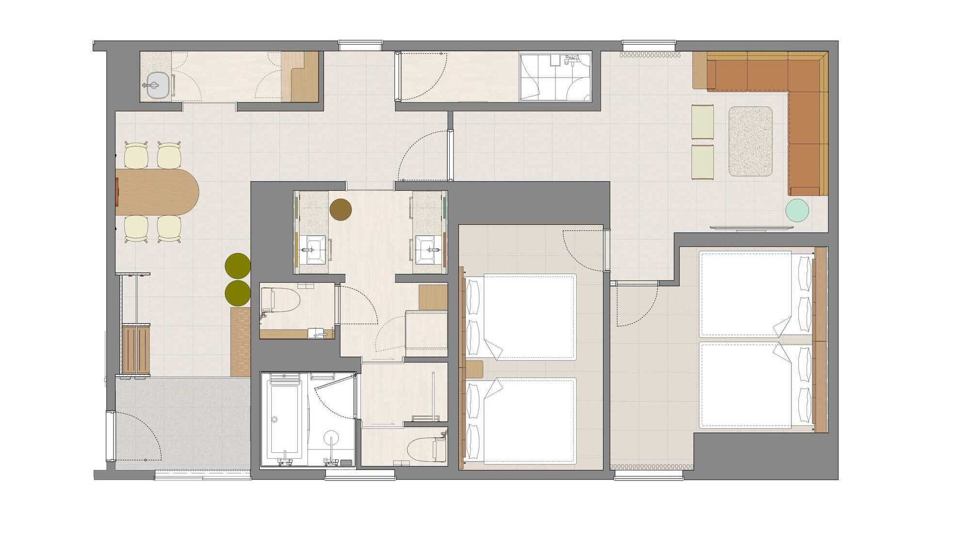 ユニットレディースルームの基本プランとなります。