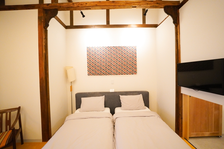 最大4名様までご宿泊できます。最大4名様でシングル布団2組、ダブル布団1組になります。お部屋には洗面台、トイレがございます。シャワー室は共同になります。