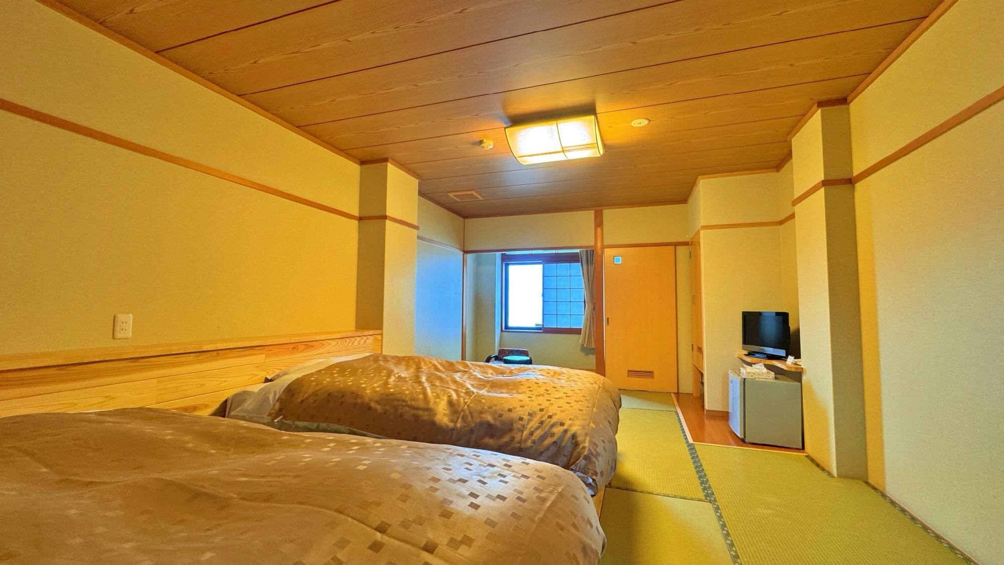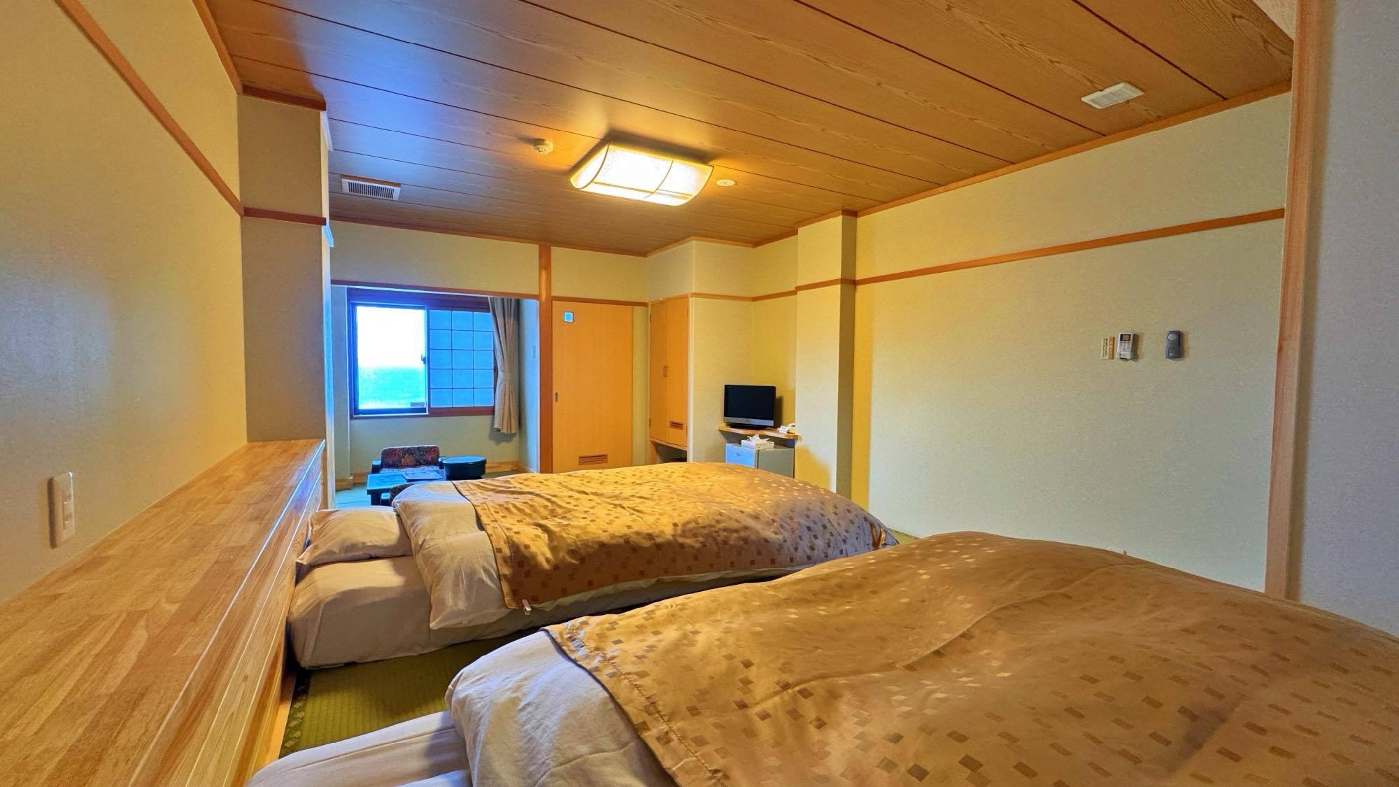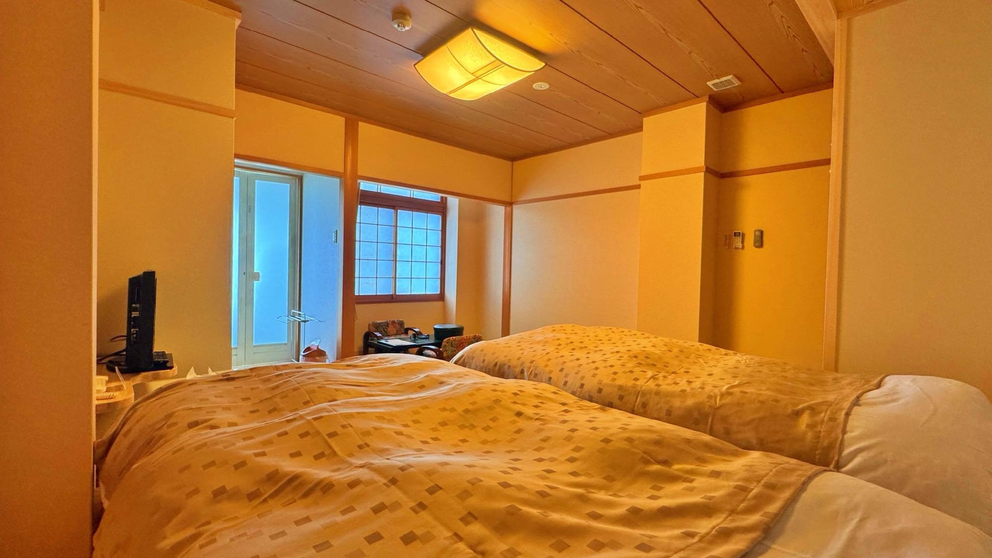 最大6名様までご宿泊頂ける和洋室。本館2階・階段。寝室3ベッド、4名以上は和室でお布団をご用意。和室に敷く布団数の指定がある場合は事前にお申し付け下さい。