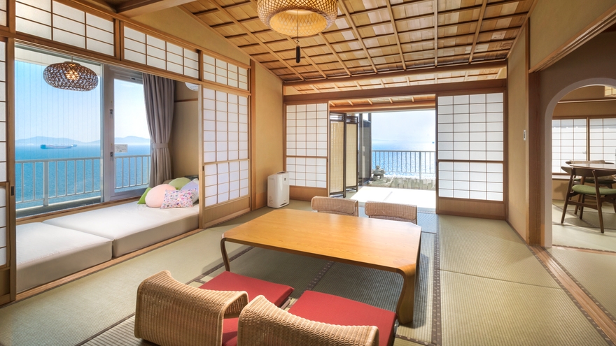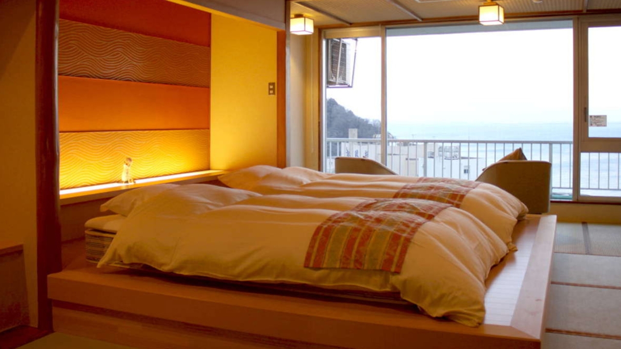■ゆったりと寛げる和室の趣と洋室のつかいやすさがコラボレートした和モダンルームは全室オーシャンビュー。