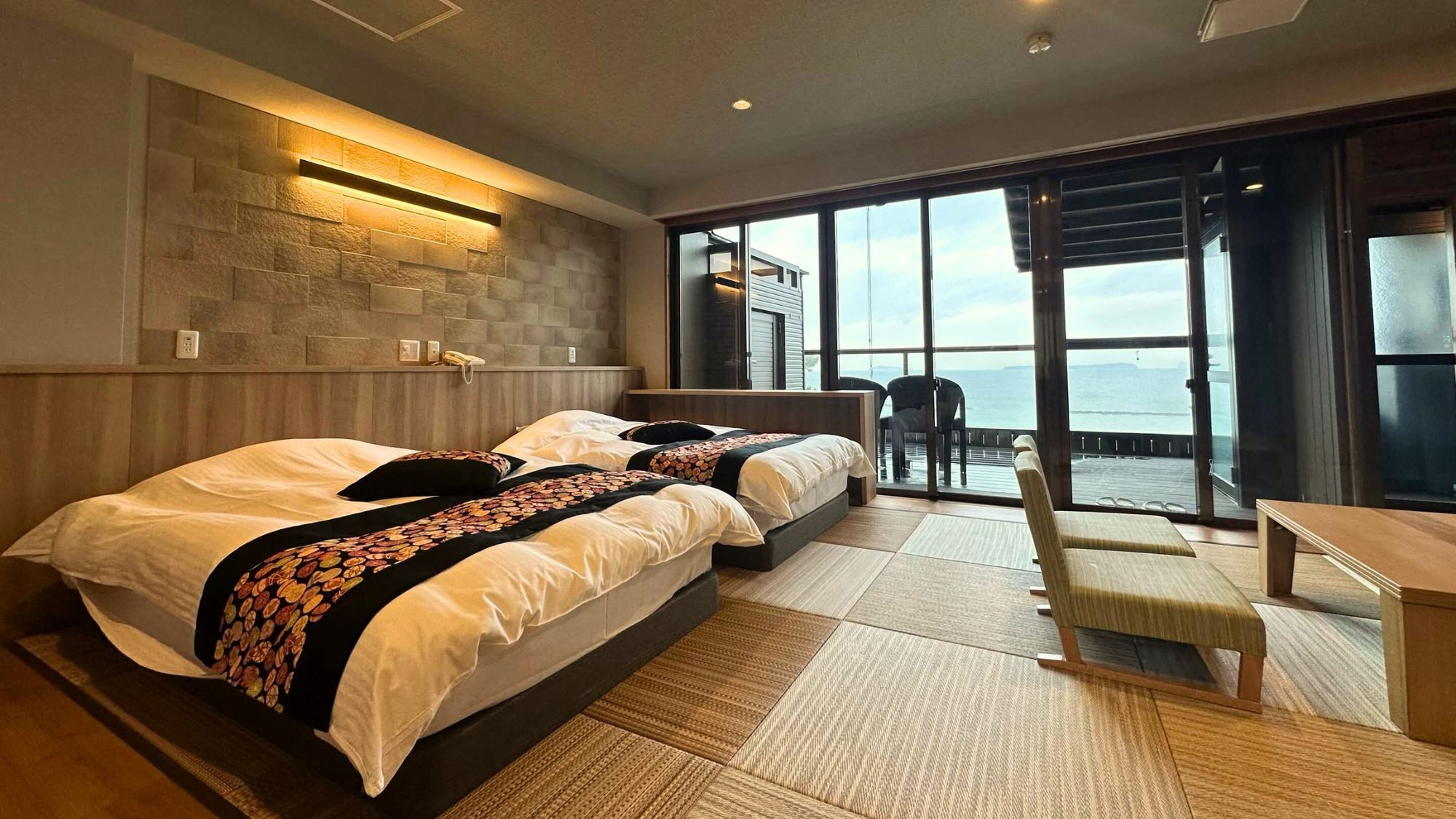 2023年12月NEW/禁煙/2階/35平米/シモンズセミダブルベット2台/3名様以上マットレス/ロウリュサウナ/ジャグジーバス※海側のお部屋ではありません