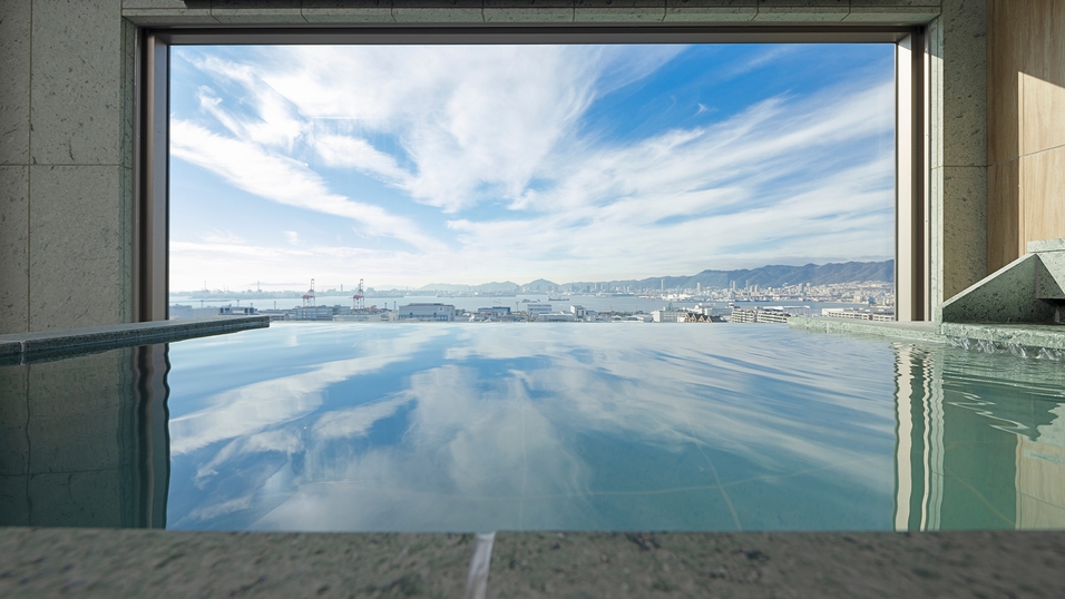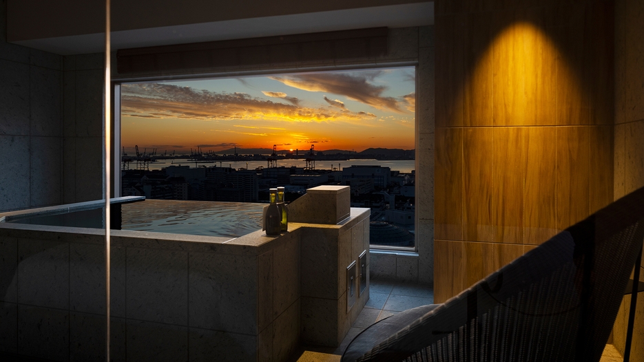 客室名にも冠されたビューバスからは、神戸港と神戸市街地、そして壮大な六甲山まで一望でき、昼はやわらかな陽光に包まれた開放感、夜には1,000万ドルとも称される夜景を眺めながら、灘五郷の日本酒を湯船に注ぐ「灘の酒風呂」も愉しめます。