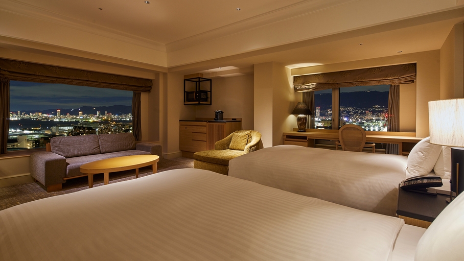 高層階から神戸の街並みと夜景を一望できるビューバス付/19階/六甲山側/ベッド幅130cm×長さ208cm(SSB)※3-4名様利用時ソファベッド併用