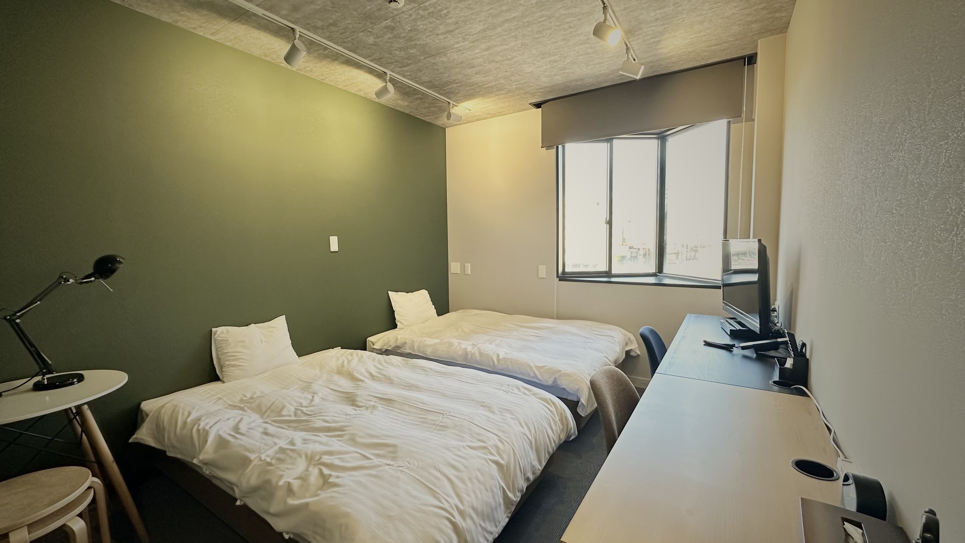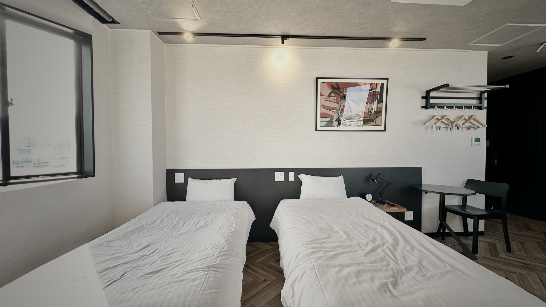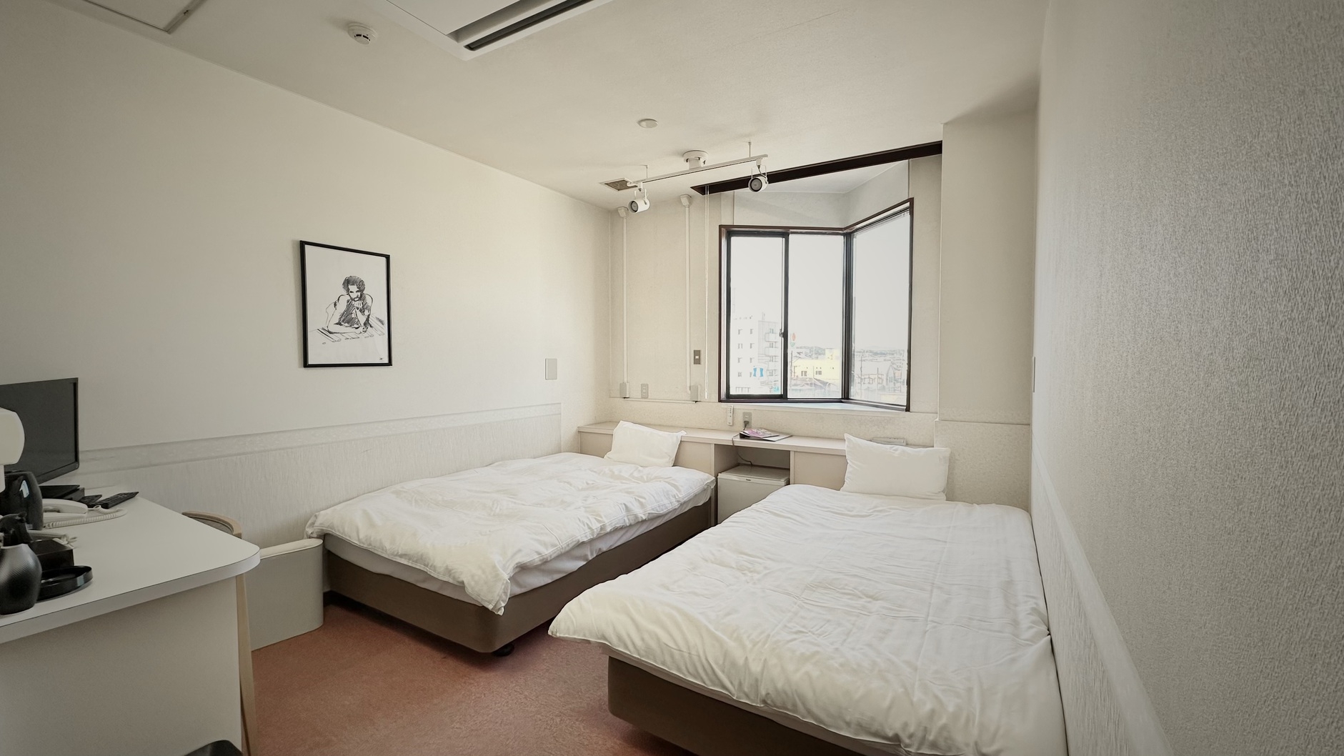 ◆禁煙◆シングルベッド2台(100cm×195cm)◆シャワールーム(浴槽なし)◆Wi-Fi無料◆改装済