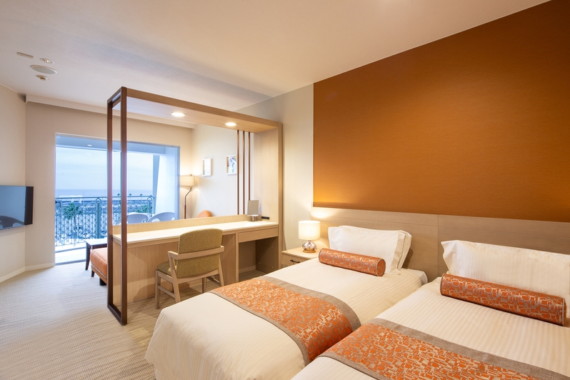 バルコニーからはもちろんお風呂からも海がご覧いただけます。全室加湿器・空気清浄機有・全室WIFI有 5階〜6階に位置する改装済のお部屋。