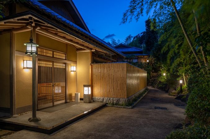 贅を尽くした設えでお迎えする離れ貴賓室。広々とした和の空間は、時を重ねた古雅な趣を纏い、職人の手仕事が息づく建築美に包まれています。窓が開放できる檜風呂からは自然の風が入り、檜の香りとともに心まで解ける時間をお楽しみください。お部屋のすぐそばには、四季折々の表情を見せる日本庭園。季節の移ろいが、滞在に静かな彩りを添えます。■お部屋タイプ貴賓室【本間12.5畳+次の間7.5畳+取次の間+広縁 温泉檜半露天風呂付 】床柱には京都北山杉の天然絞り丸太の逸品を使用。天井は奈良の吉野杉による、一枚板の中に照明を入れ、柱は吉野の天然面皮柱を使用しております。浴槽は木曽産の天然檜を使用した檜風呂。開放感のある半露天風呂に身をゆだね、至福のひと時をお過ごしください。■お料理小嵐亭が誇る出汁の旨味を極めた会席料理をご用意します。・季節の食材を織り込んだ八寸・一番出汁の香り立つ椀物・新鮮な魚介のお造り・素材の持ち味を引き出す焼物や煮物派手な盛り付けよりも、和食の流れを大切にした進行で、一品一品が自然につながり、余韻を残す味わいに仕上げています。○ご夕食・ご朝食ともに、お客様のお部屋にご用意いたします。※各種お料理写真はイメージです。※小学生のお子様が大人と同様のお料理をご希望の場合、大人料金になりますので差額分を現地にて追加精算となります。宿に直接ご連絡を3日前までにお願いいたします。■お風呂『泉質:ナトリウム塩化物泉』見晴らしの良い当館最上階の8階にございます2種類のお風呂は、15時から25時まで、朝は6時から11時までご利用いただけます。また、朝は男女入れ替えとなります。「阿多美(あたみ)の湯」壁にインド砂石をあしらった、重厚感のある御影石の湯殿です。遠方に太平洋を望みながら、ゆったりと癒される展望風呂です。「こあらしの湯」重厚感あふれる黒御影石造り。湯口には檜葉が使用されており、木の香とともに上質な温泉に、心とからだが癒されることでしょう。■その他・チェックイン:15時 / チェックアウト:11時・お部屋を含め、全館禁煙です。(3階に喫煙所がございます)・入湯税150円/宿泊税200円は別途いただきます。