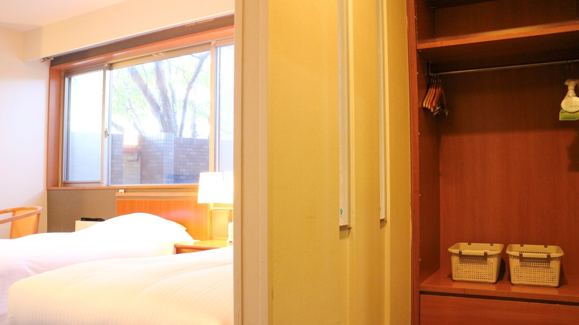 【1室限定】シングルベッド2台。当館唯一のバリアフリールーム、1階にございます。(安全上未就学児の添寝利用は1名まで)