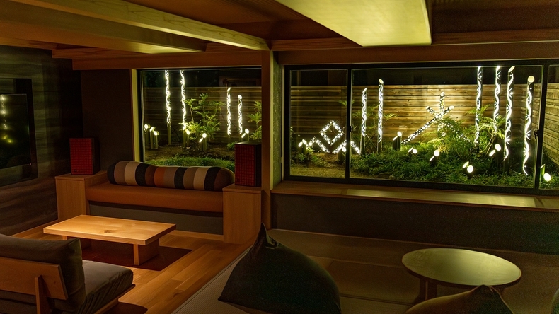 TAKUMIシリーズ最高峰の客室。庭園/リビング/寝室2部屋/温泉露天風呂/プロジェクター/Netflix/Youtube※露天風呂は温泉を引いております。