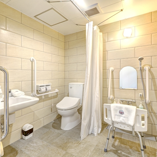 車椅子をご利用のお客様にも快適に過ごしていただけるバリアフリールームをご用意しております。全室オーシャンビュー。