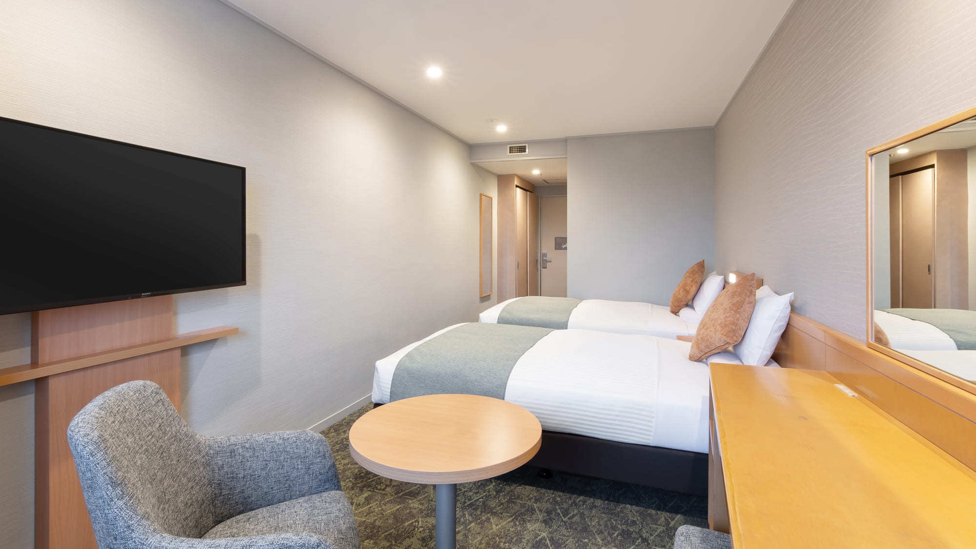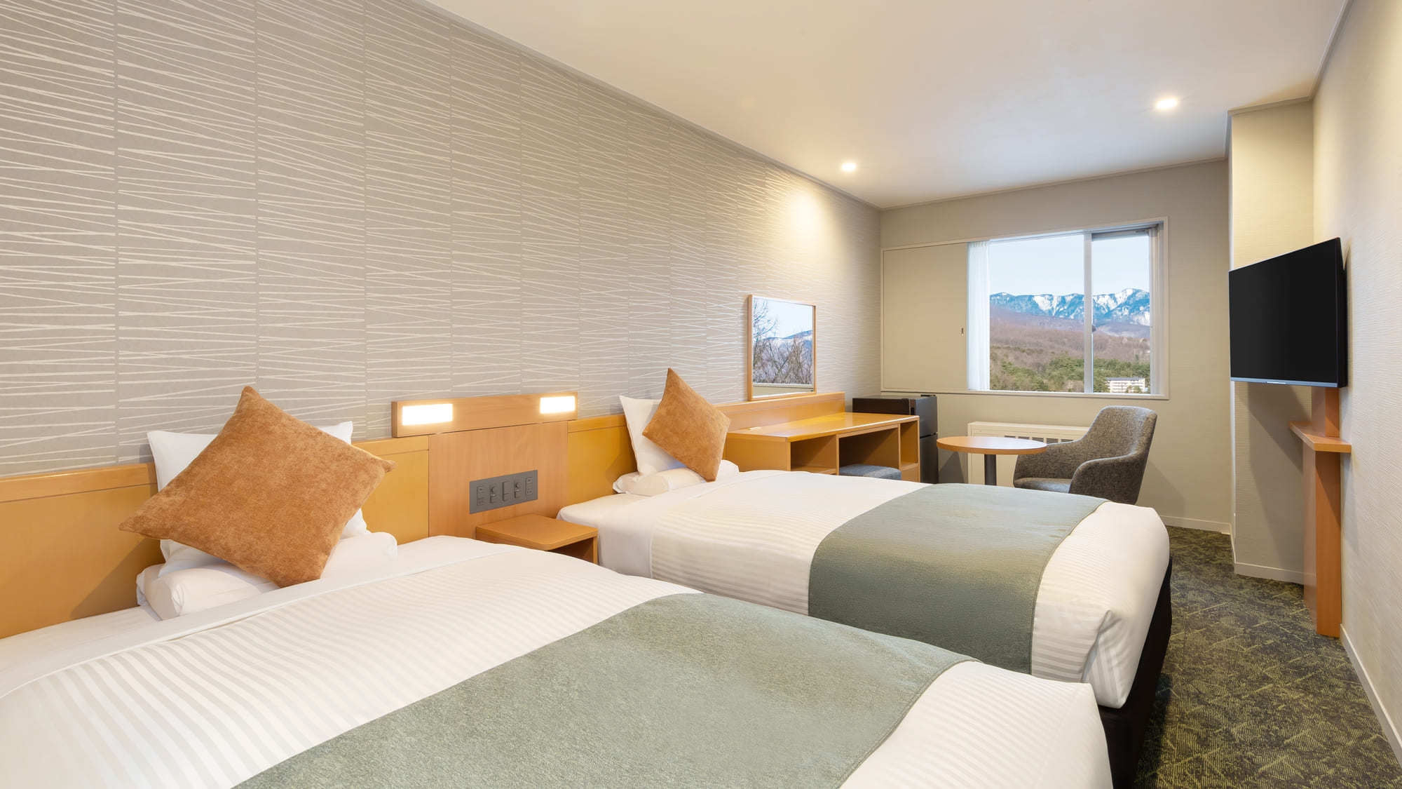洋室ツイン(23平米)/バス・トイレ・洗面所付/5/31まで暖房設備不良により、石油ファンヒーターでのご用意となり、定期的な換気のご協力をお願いいたします。