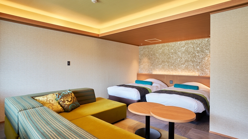 ベッドルームと和室の二間タイプのお部屋です。※「ベッドルーム+和室15畳」「ベッドルーム+和室10畳+広縁」の2タイプ。選択不可。※添い寝は1部屋2名まで。