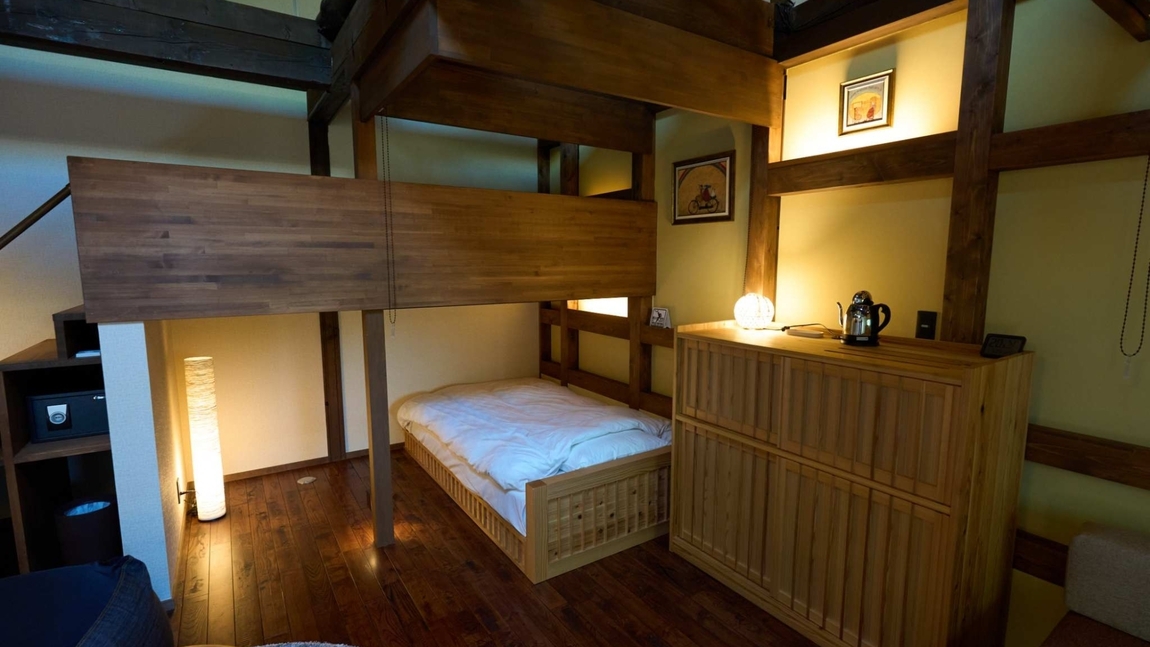 大人数のご家族やグループでのご宿泊に対応したファミリールーム。畳スペースと2段ベッドを利用して最大7名で宿泊できます。お子様の添い寝をご希望の場合は要問合わせ。