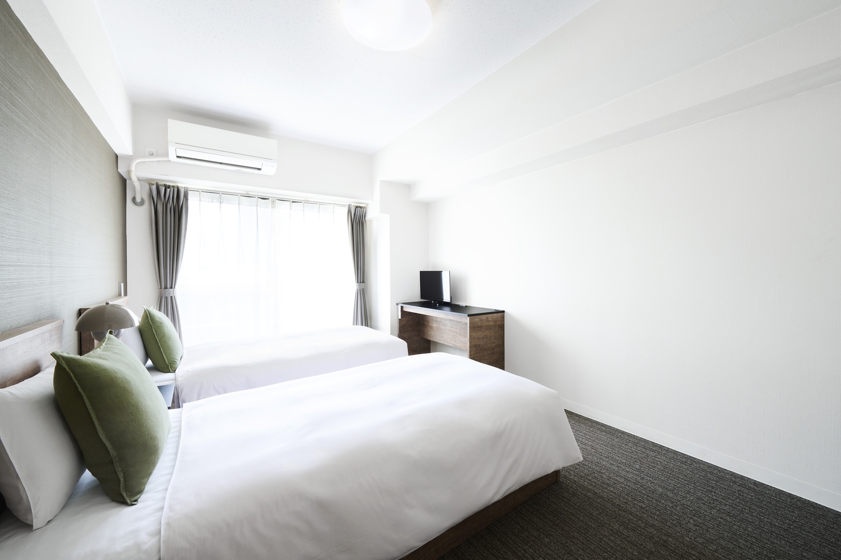 お一人様ずつ寛げるシングルベッド2台のツインルーム。お部屋の中に専用バスルームあり。(最大人数:大人2名様・5歳以下1名様)