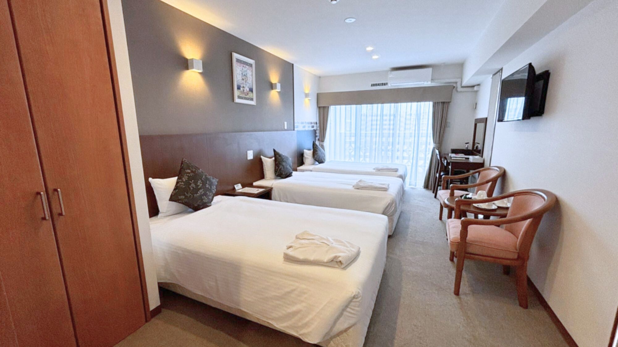 【ホテルタイプ】ハリウッドツイン対応可【35平米/ベッド(110CM×200CM)×3台/温水洗浄便座/無料Wi-Fi】
