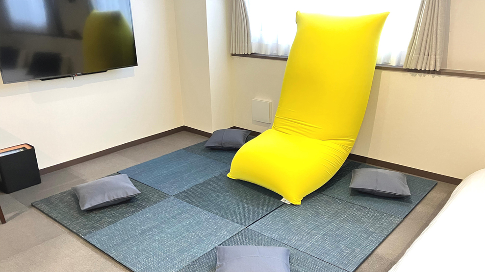最大4名様までご宿泊可能(セミダブルベッド2台・布団セット)広々バスタブ付お風呂でごゆっくり◆畳みスペース◆ヨギボーマックス◆空気清浄機&フェイシャルスチーマー