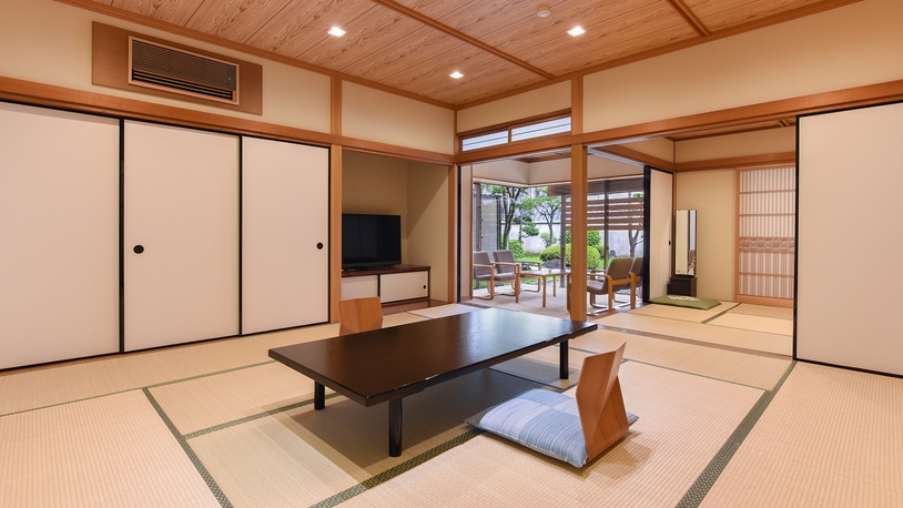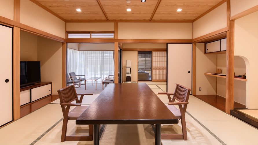 1室限定。和室を2室有しており(セパレート)、当館で最も広いお部屋です。※15畳和室が座卓式・10畳和室が椅子テーブル式となります。変更はできかねます。