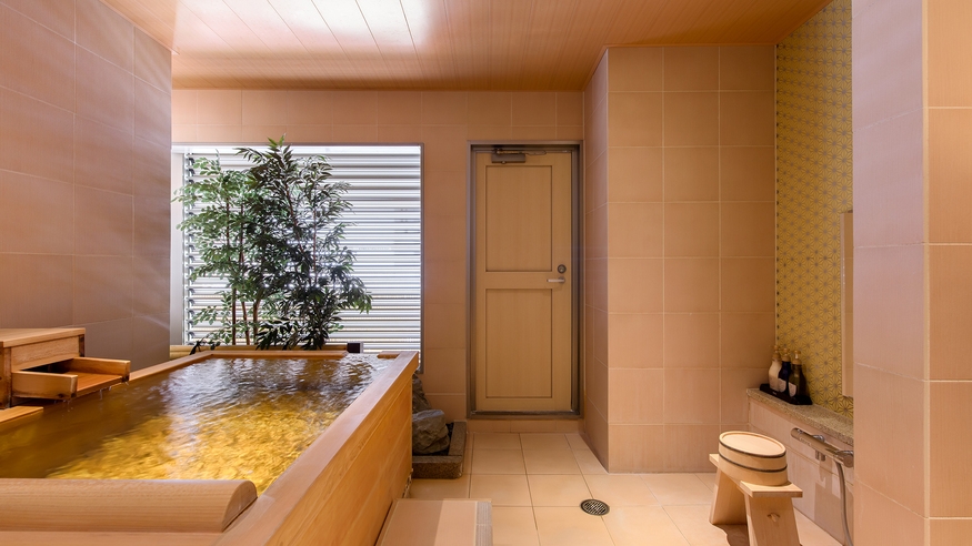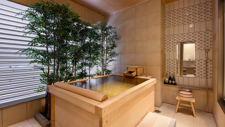 総ヒノキ造りの浴槽でプライベートに何度でもご入浴をお楽しみください。