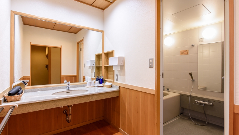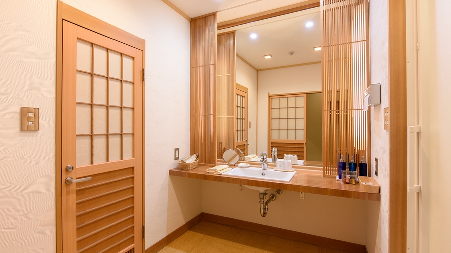全室68平米以上(露天風呂テラス部分を含む)12.5畳+4.5畳・和洋室など複数の間取りがございます(ご指定不可)。露天風呂とは別にシャワー設備付きの内風呂あり