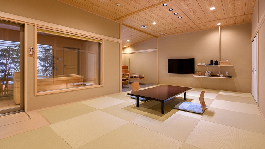当館が開発した全天候型の「室内露天風呂」が付いた客室です。