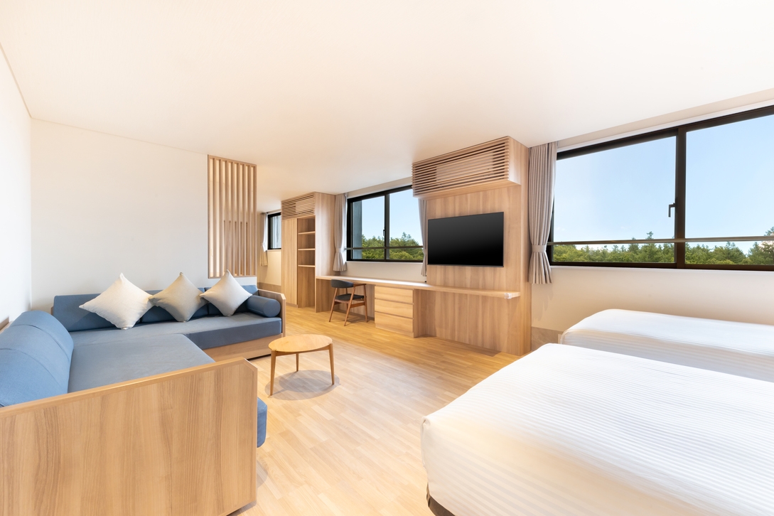 当ホテル最大の62平米のお部屋。 ソファベッドとトランドルベッドで最大5名様までご宿泊可能です。 ファミリーやグループでのご利用にぴったりです。