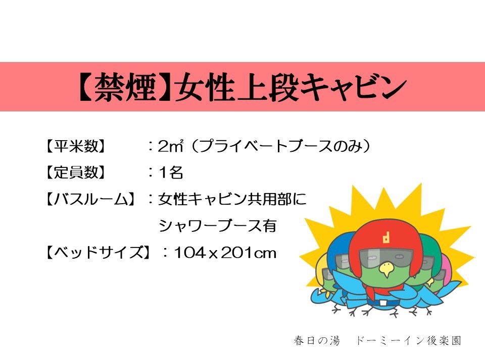 キャビン(カプセル)は男女別でございます。お間違いが無いよう今一度