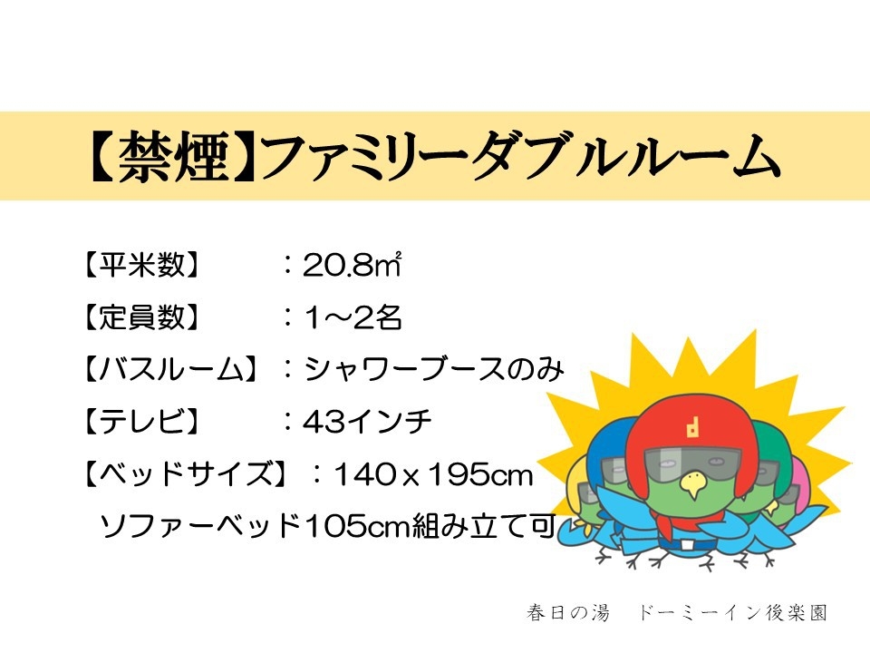 ■添い寝のお子様はベッド1台につき1名様までとさせていただき、別途施設利用料を申し受けます。0〜2歳…無料/3歳〜小学生…3,000円