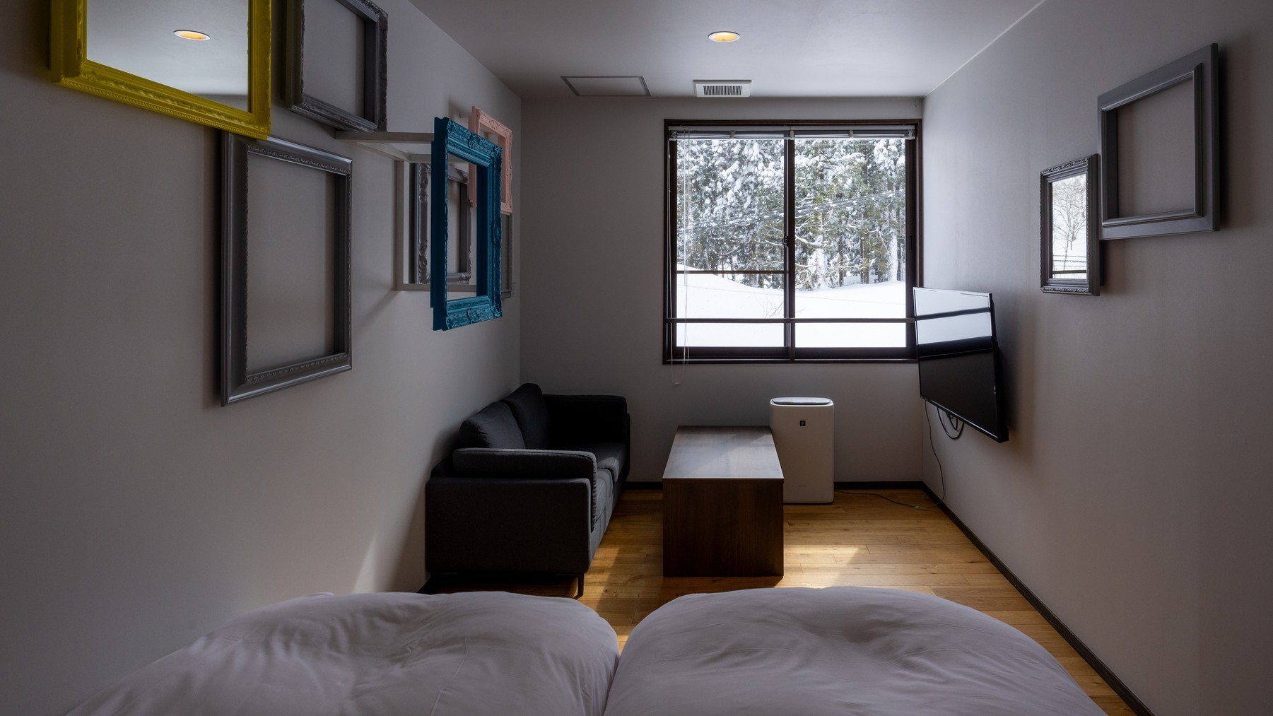 【Room5】スタンダード ◇アートと大自然を楽しむツインルーム コスパ重視でもアートや自然に触れたい方におすすめ お部屋のコンセプト上、あえてテレビを設置し