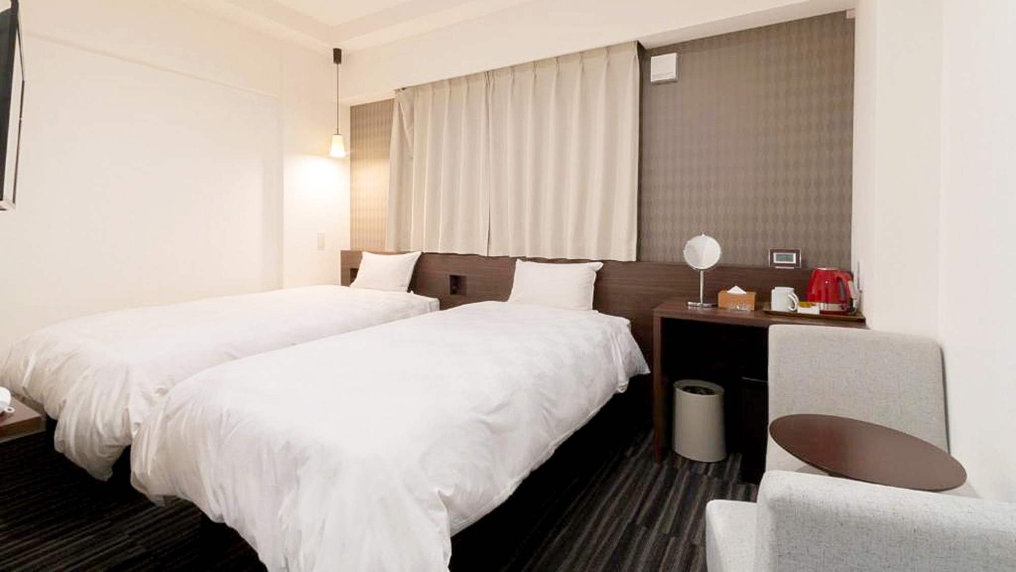 <客室設備> シングル2台(幅100cm)/Wi-Fi/テレビ/冷蔵庫/個別空調エアコン/ユニットバス/ 洗浄器付トイレ/湯沸かしポット/ヘアドライヤー