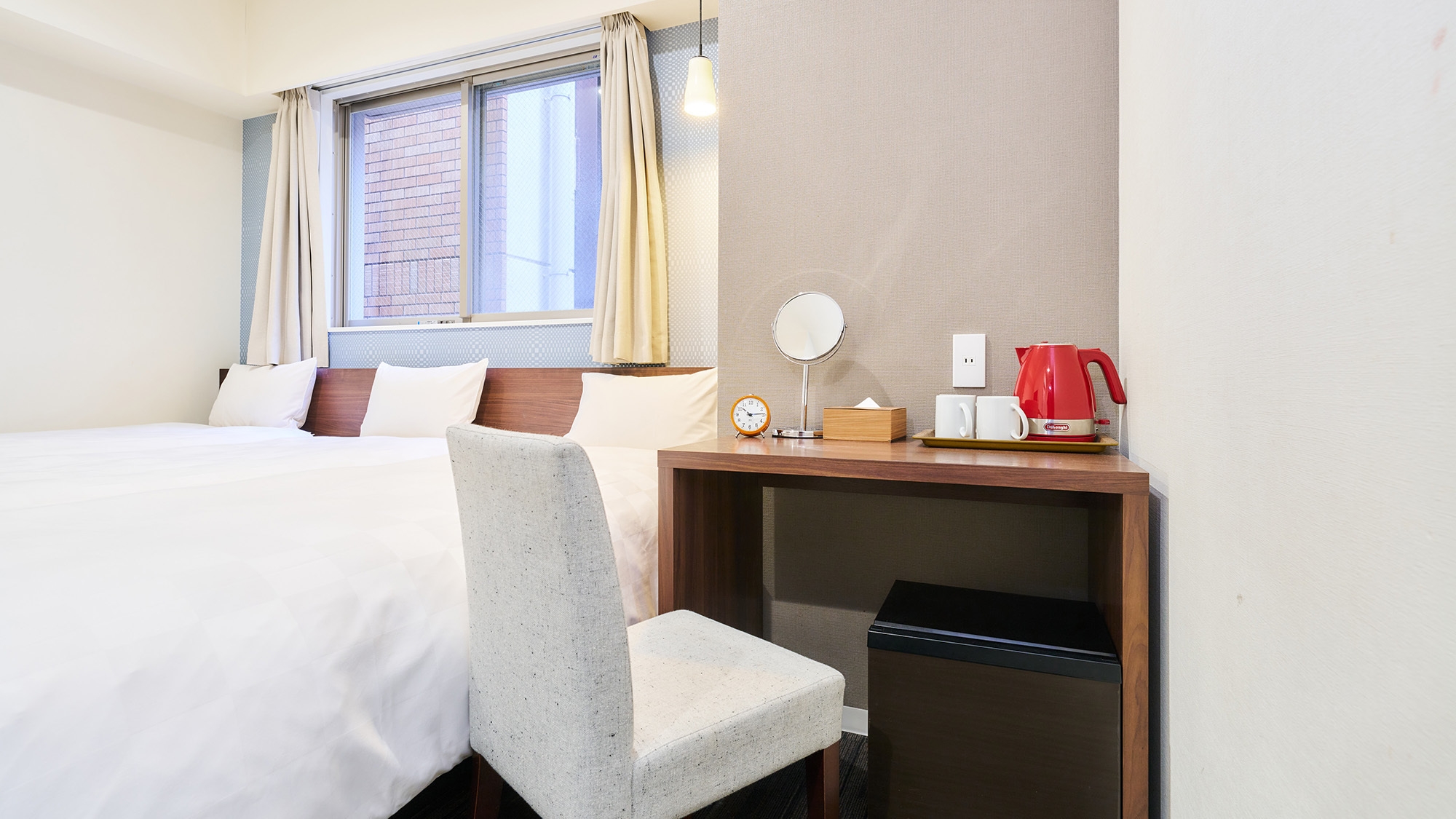 <客室設備> シングル2台(幅100cm)/Wi-Fi/テレビ/冷蔵庫/個別空調エアコン/ユニットバス/ 洗浄器付トイレ/湯沸かしポット/ヘアドライヤー